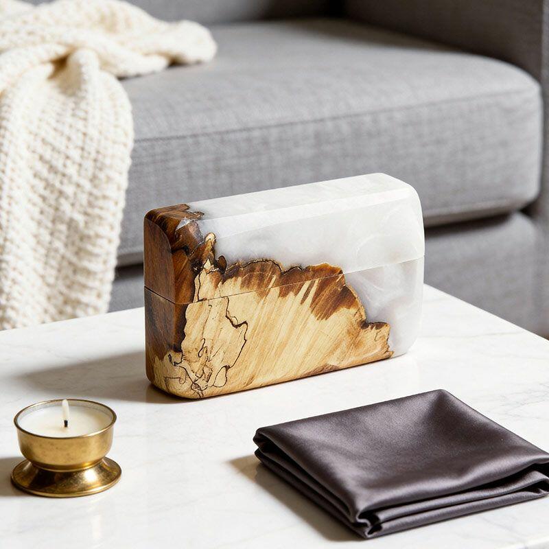 Heritage Crafted Reslol Dual-Ring Resin-Wood Square Box - Unique Wedding Keepsake