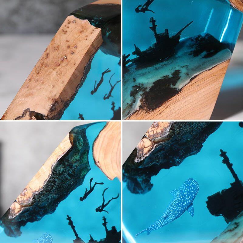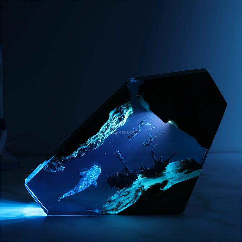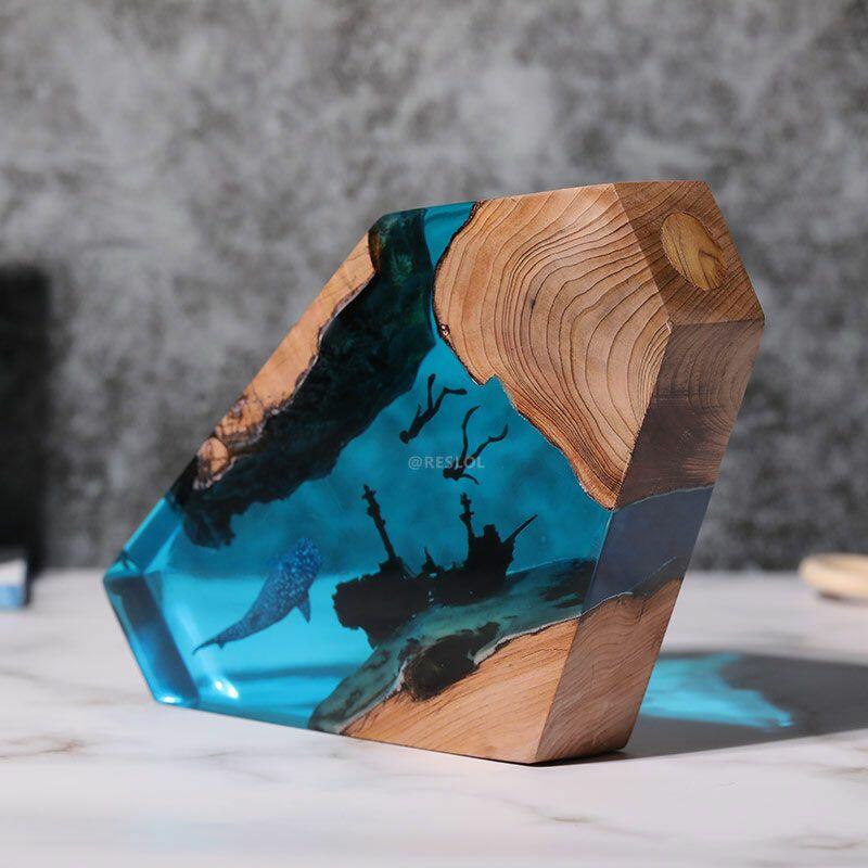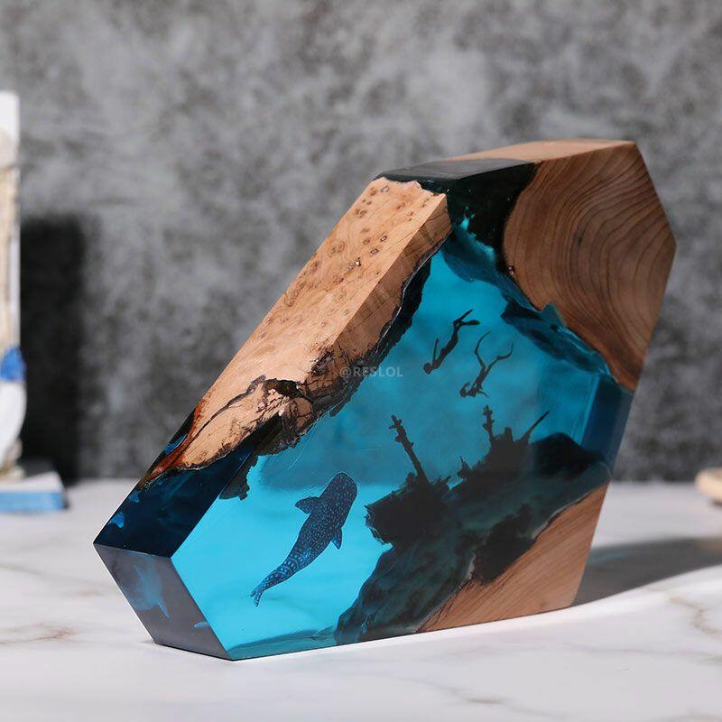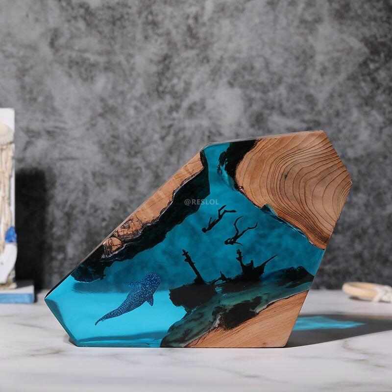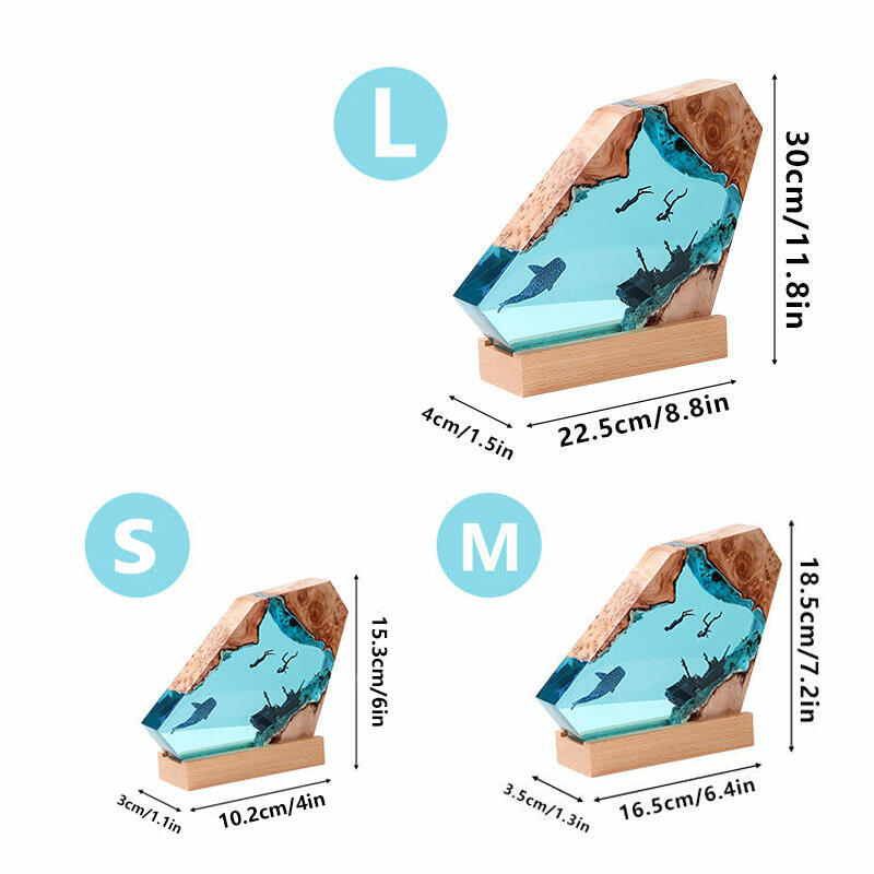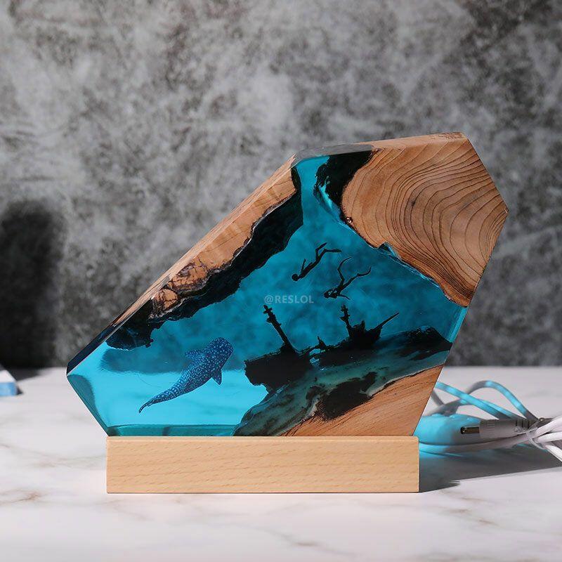 Humpback Whale Resin Night Light – Ocean Shipwreck Decor – Handmade Wood & Resin Lamp