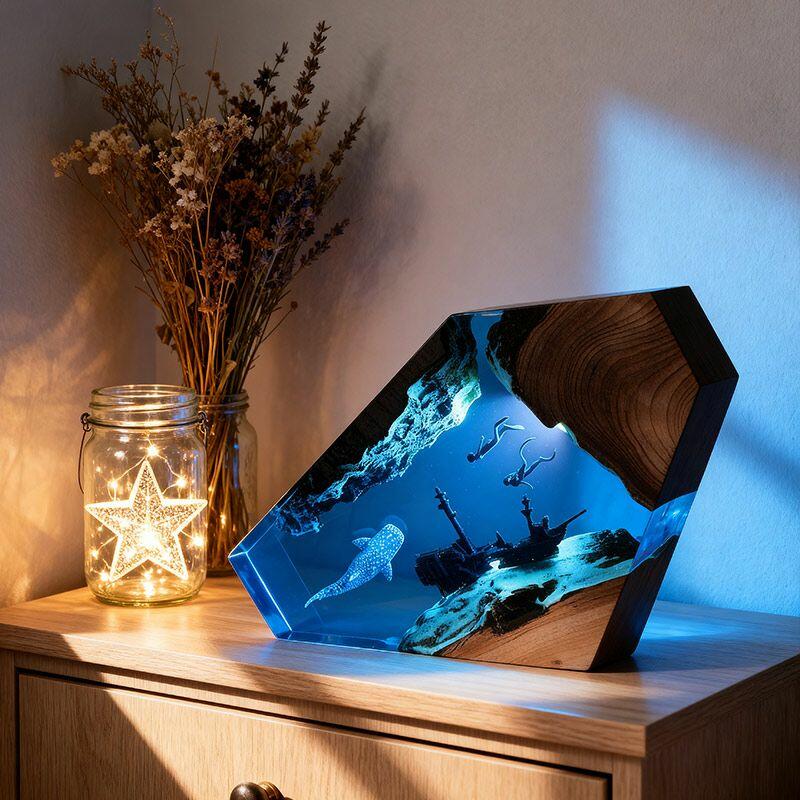 Handcrafted Humpback Whale Resin Night Light – Bring the ocean’s magic into your space with this unique handmade lamp, featuring a stunning 3D shipwreck and humpback whale design. Perfect as a thoughtful gift or cozy bedroom/office decor.
