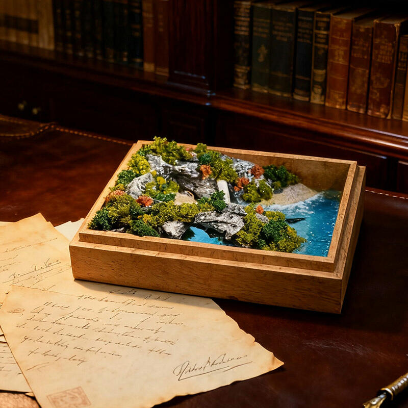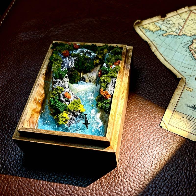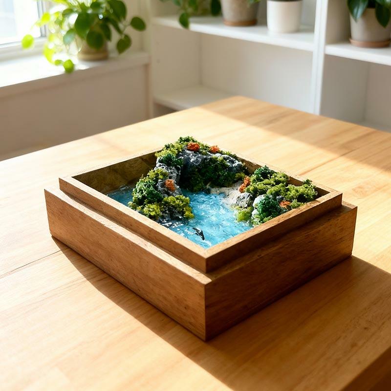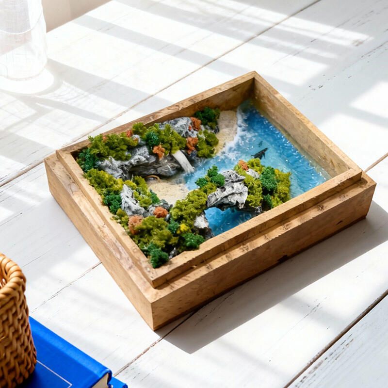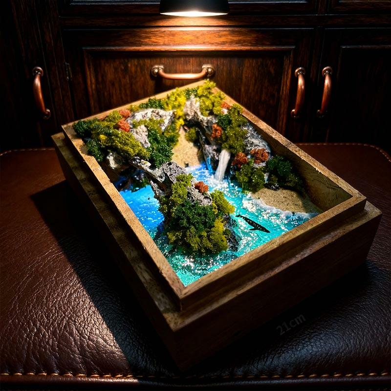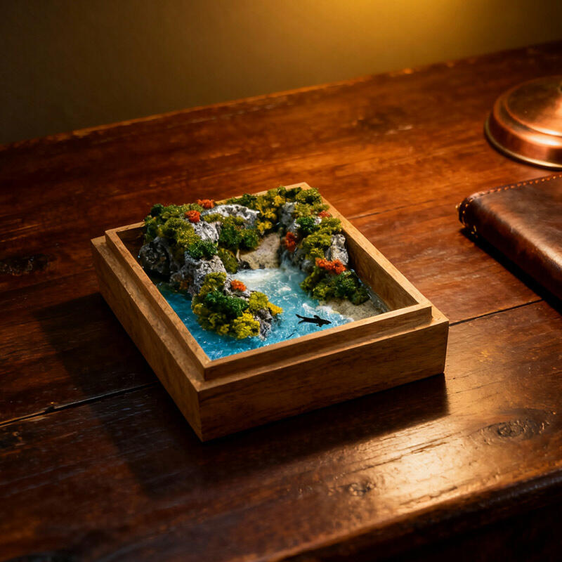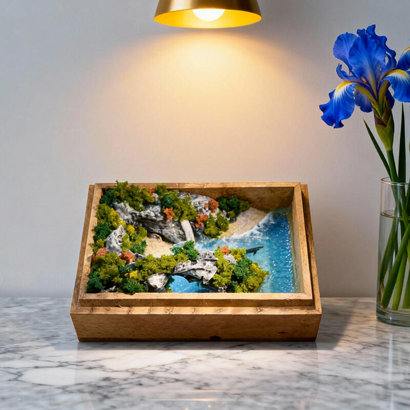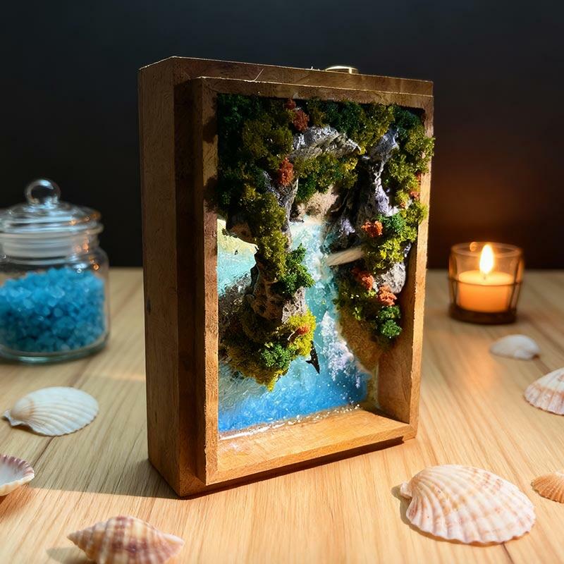 Lapis Glow Ocean Resin Night Light, Handcrafted Coral Cove Miniature Decor Gift