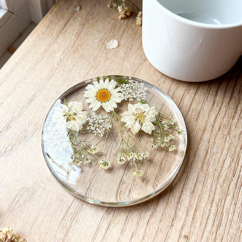 Note: As each piece is handmade, slight variations in flower placement and resin texture may occur, making every coaster one-of-a-kind. Measurements are approximate due to the artisan crafting process.