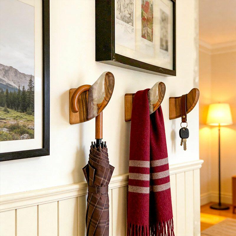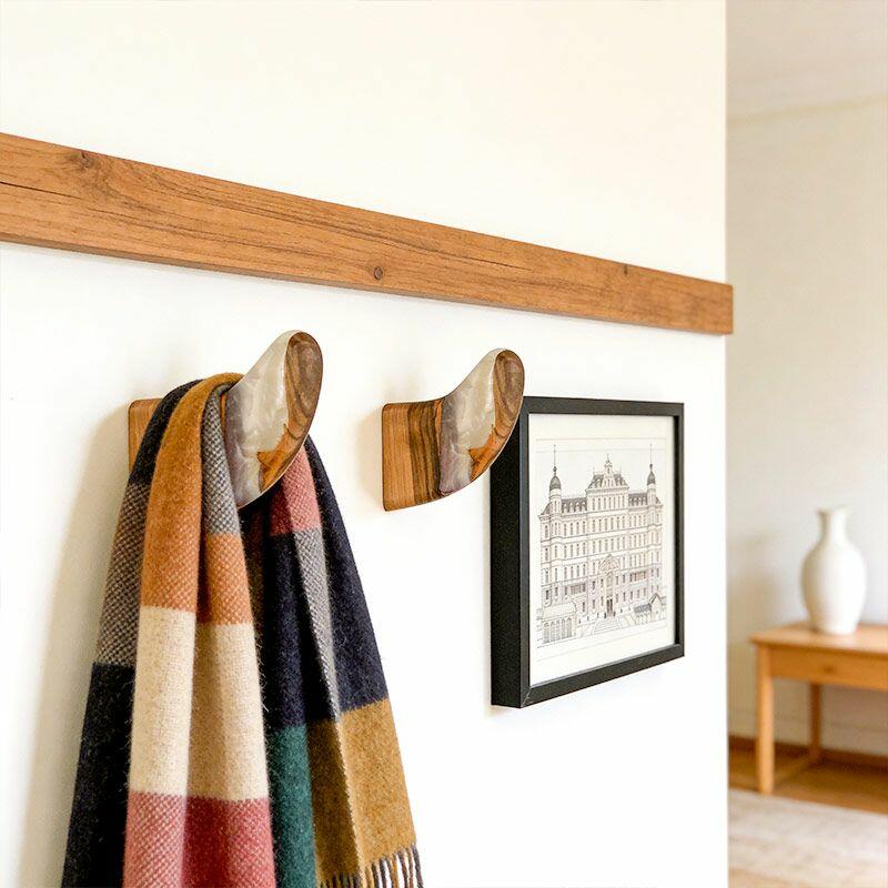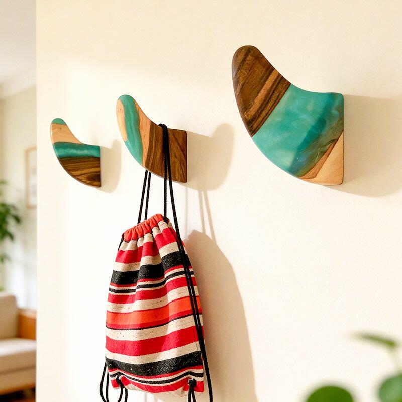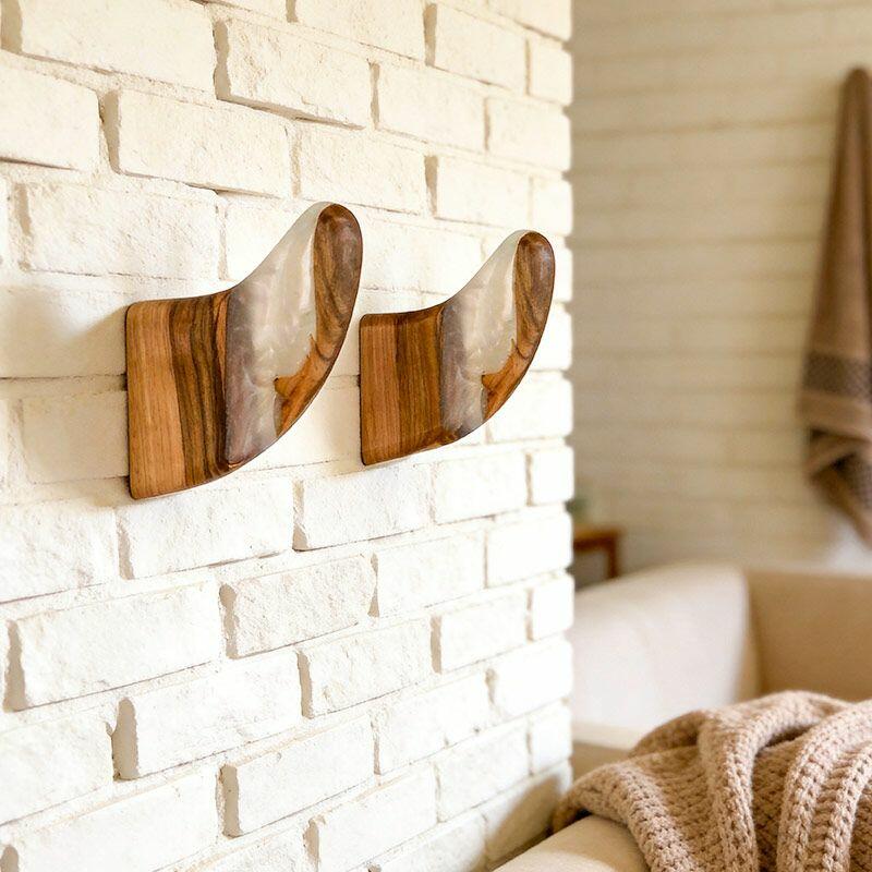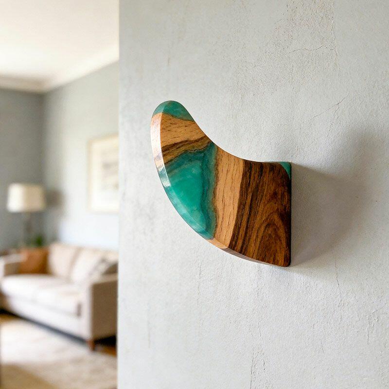 Each hook includes 2 screws and anchors for secure wall mounting, designed to prevent rotation even when holding coats, backpacks, or towels. As a handcrafted piece, slight variations in resin color and wood texture make every hook unique—no two are identical. Rest assured, all Reslol designs are original, crafted to avoid infringement. Perfect for upgrading your home decor or gifting to loved ones on housewarmings.