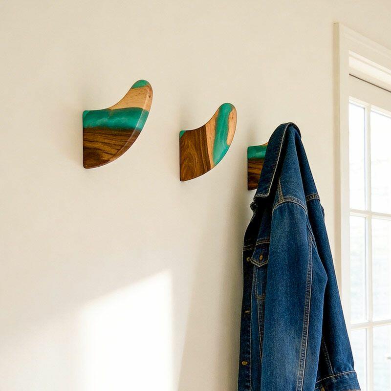 Minimalist Arc Resin-Wood Wall Hooks | Reslol Artisanal Decor & Storage