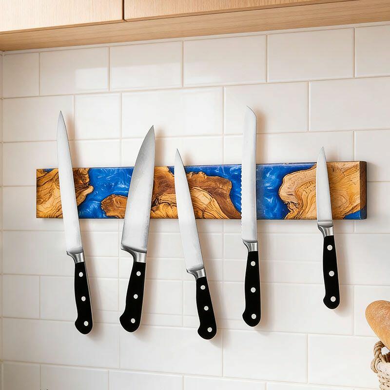 Modern Blue Resin Wood Magnetic Knife Rack – Kitchen Organizer & Gift