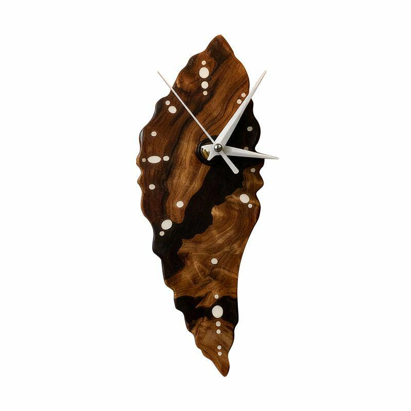 Modern Minimalist Resin Wood Leaf-Shaped Wall Clock - Artisanal Home Decor
