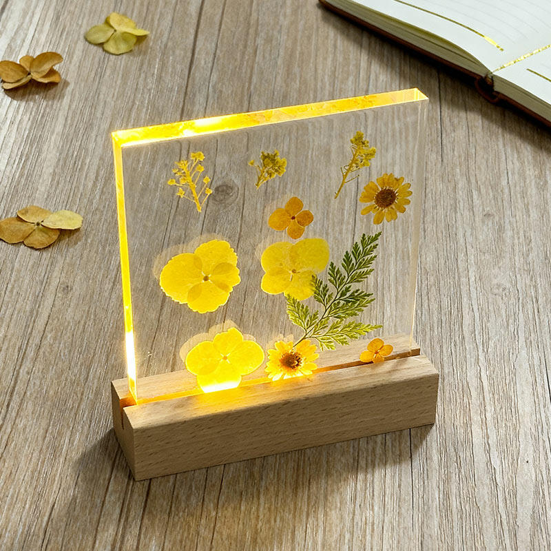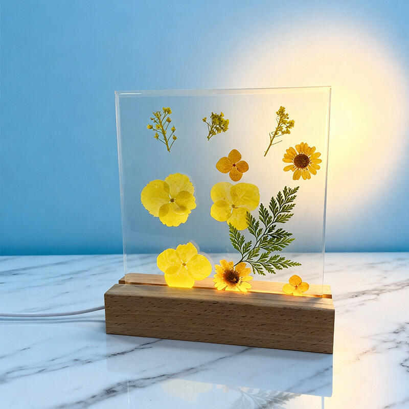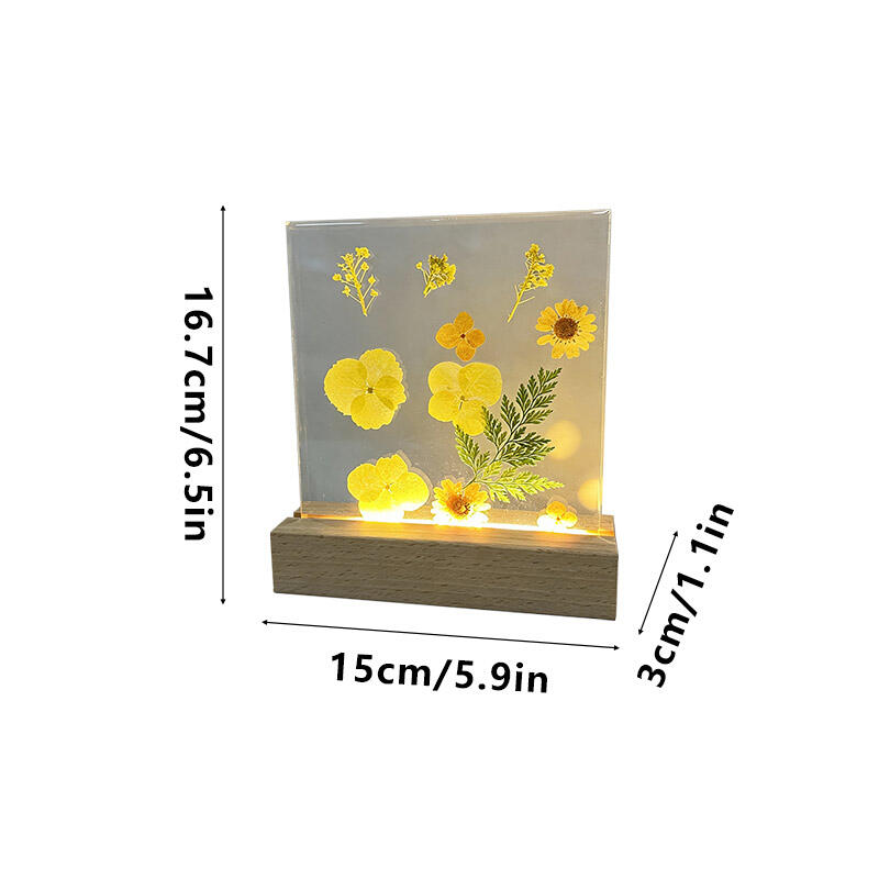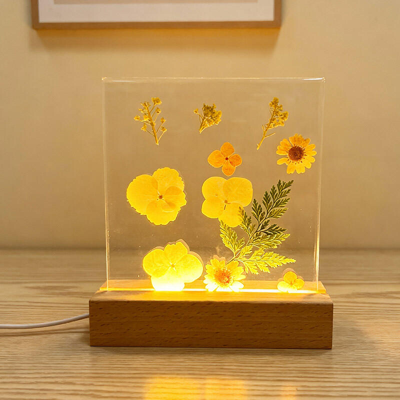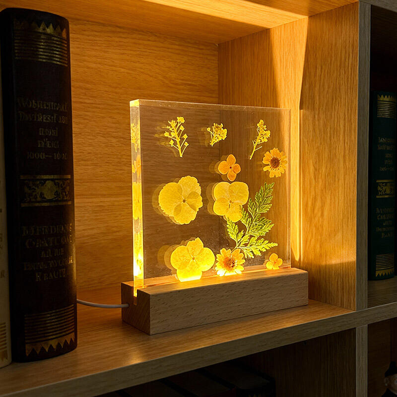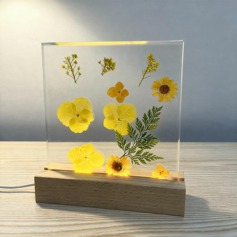 Reslol’s Artisanal Resin Square Night Light captures the warmth of sunlit yellow florals, encased in crystal-clear resin to preserve their fresh, vibrant beauty. The sleek square design, paired with a soft LED glow, illuminates the petals’ delicate details, casting a cozy, inviting ambiance in bedrooms, shelves, or living spaces.