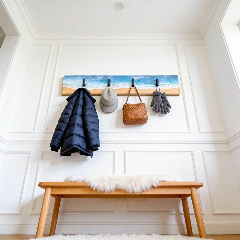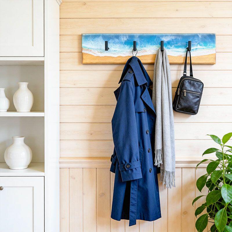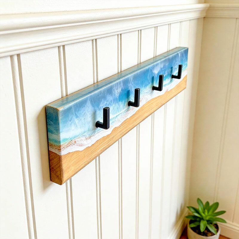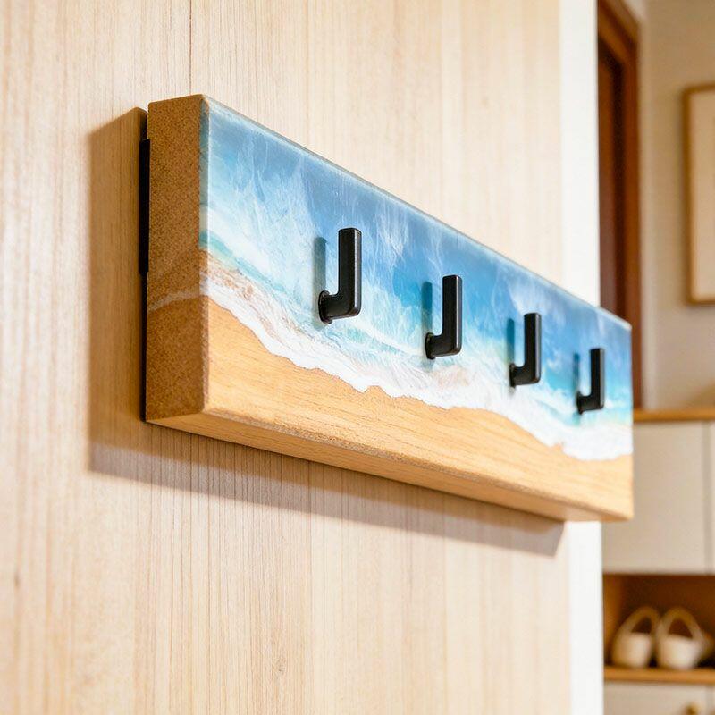 Reslol’s Ocean Series Coat Rack captures the serene power of coastal waves in handcrafted artistry. Merging natural wood with swirled blue-white epoxy resin, it mimics the dynamic flow of ocean tides—where wood grain resembles weathered shoreline and resin shimmers like sunlight on water. A celebration of coastal, it turns functional storage into a wall-mounted seascape.