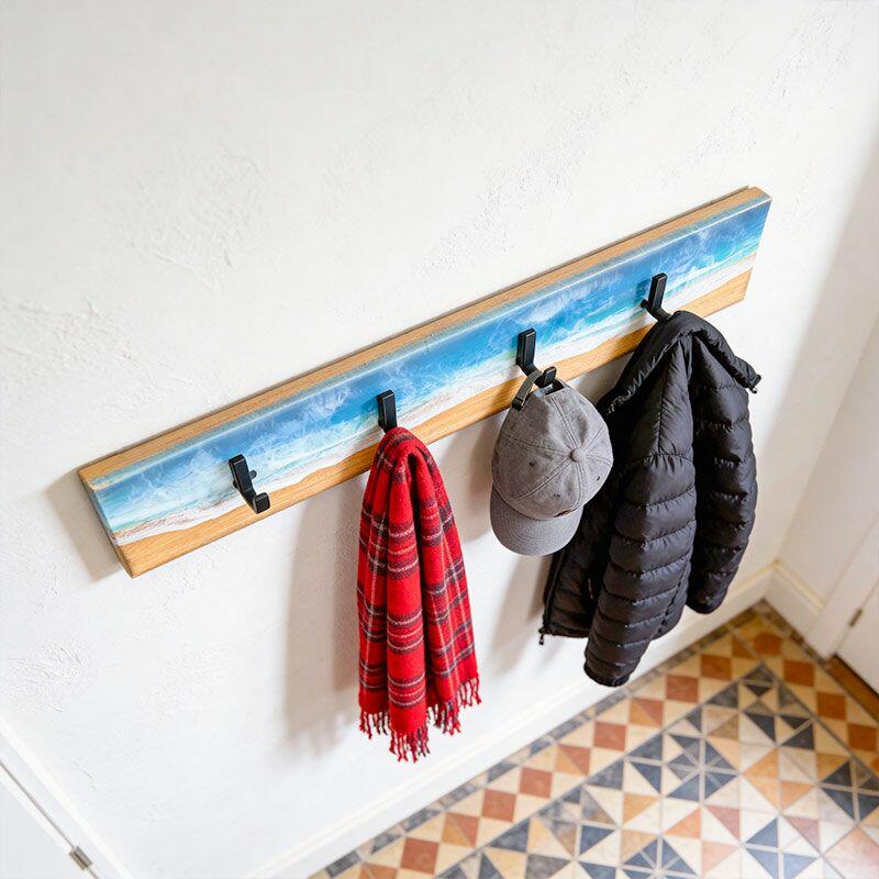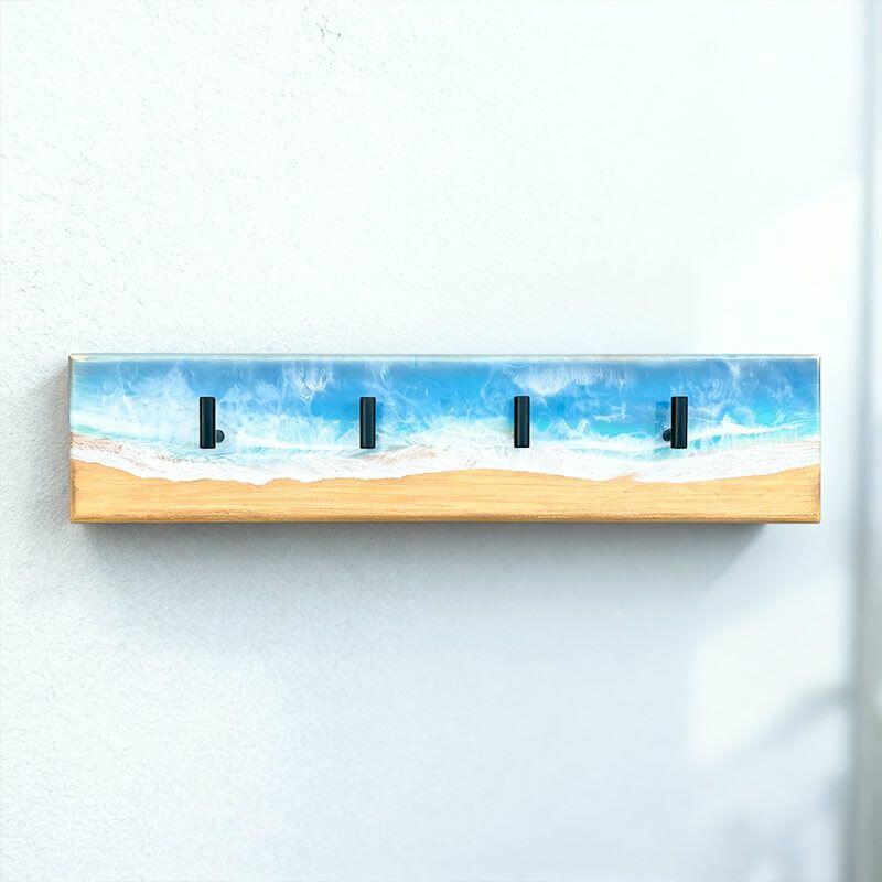 Nautical Blue Wave Epoxy-Wood Coat Rack | Reslol Coastal House Decor