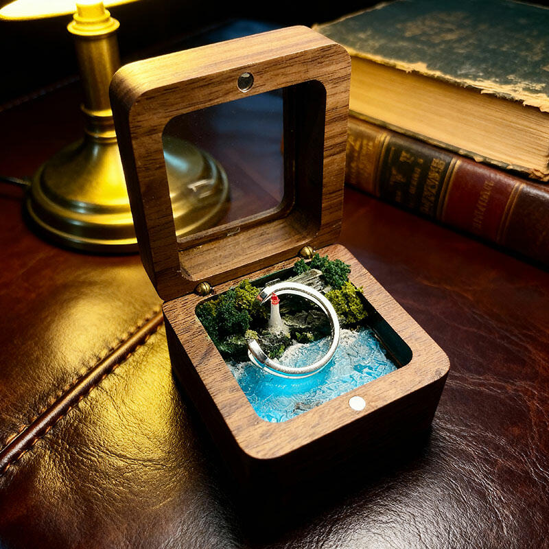 Nautical Luminary Resin & Black Walnut Ocean Lighthouse Ring Box