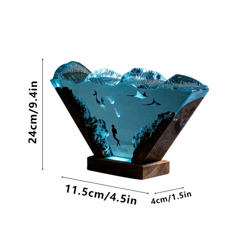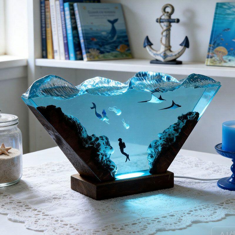 More than a lamp, it’s a storytelling decor piece—ideal for desks, living rooms, or as a heartfelt gift for ocean lovers, art enthusiasts, or anyone who adores unique handcrafted art. Each piece is hand-poured and carved, using natural wood and resin, so slight variations in color, texture, or size (from manual measurement) make every lamp one-of-a-kind.