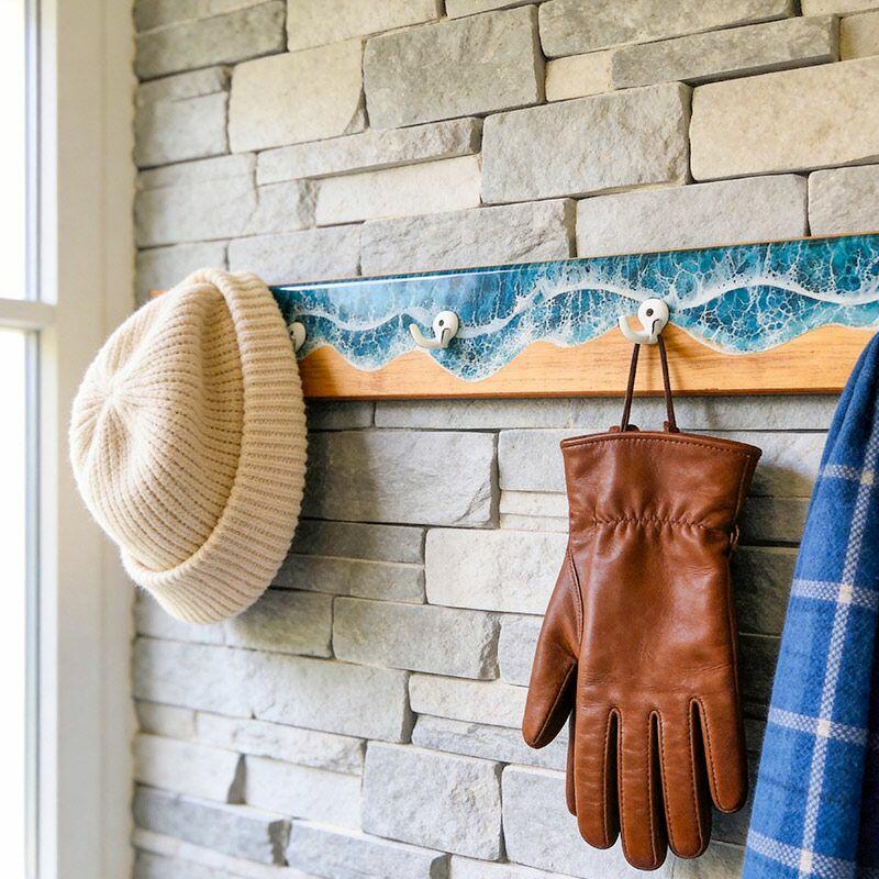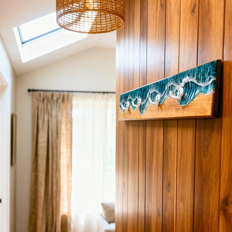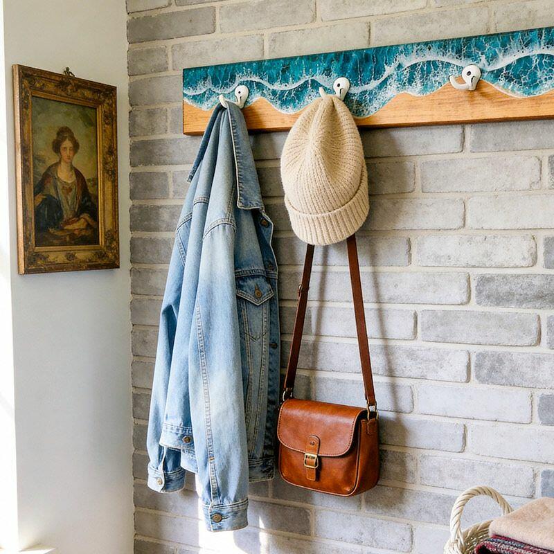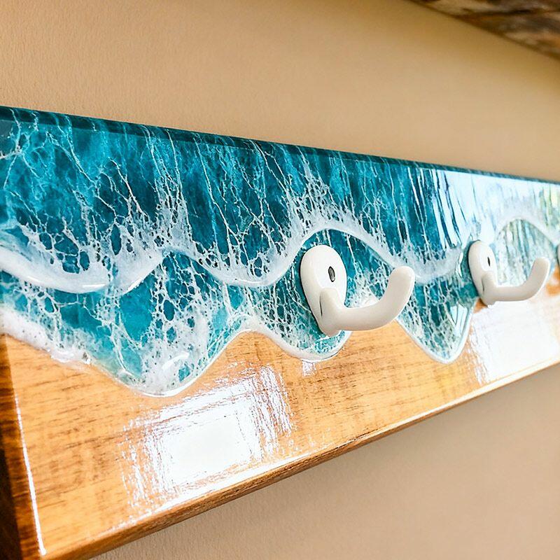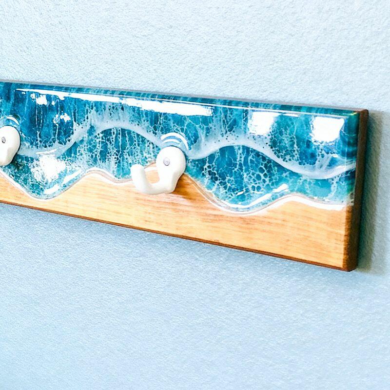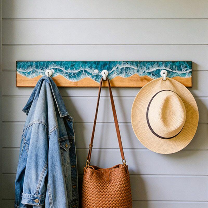 Reslol’s Ocean Series Wall Hook Rack transforms functional storage into a 3D coastal masterpiece. Handcrafted with natural wood and layered epoxy resin, it captures the dynamic beauty of ocean waves—where glossy resin mimics frothy white crests crashing over a weathered wood base, evoking the serene energy of the shore. A fusion of art and utility, it brings beachside charm to any wall.