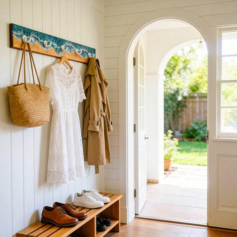 Whether as a thoughtful housewarming gift for ocean lovers or a personal upgrade to your home, this rack merges artisanal craftsmanship with coastal allure, turning everyday organization into a visual escape to the beach.