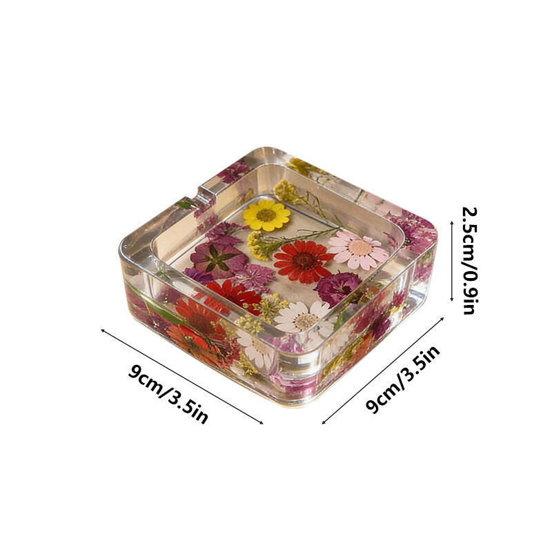 Note: Due to manual measurement, slight size variations may occur. As each ashtray is handcrafted with real flowers, minor differences in flower position, color, or resin texture are natural and highlight its one-of-a-kind artisanal quality. All designs are original and independently created.