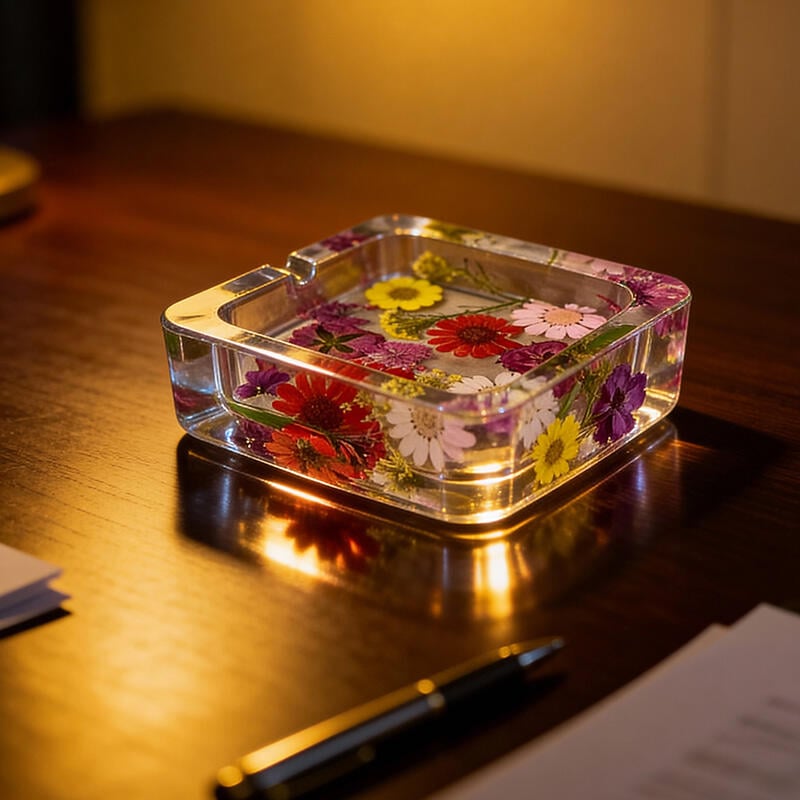More than an ashtray, it’s a celebration of craftsmanship: every piece is handmade, ensuring unique variations in flower placement and resin flow—no two are identical. Ideal for gifting to flower enthusiasts, family, or friends, or as a personal decor statement, it embodies Reslol’s dedication to original, eco-friendly, handcrafted design.