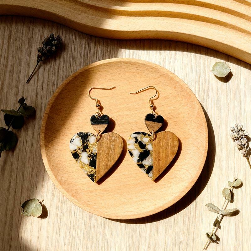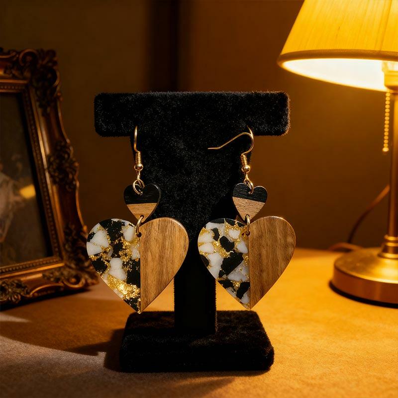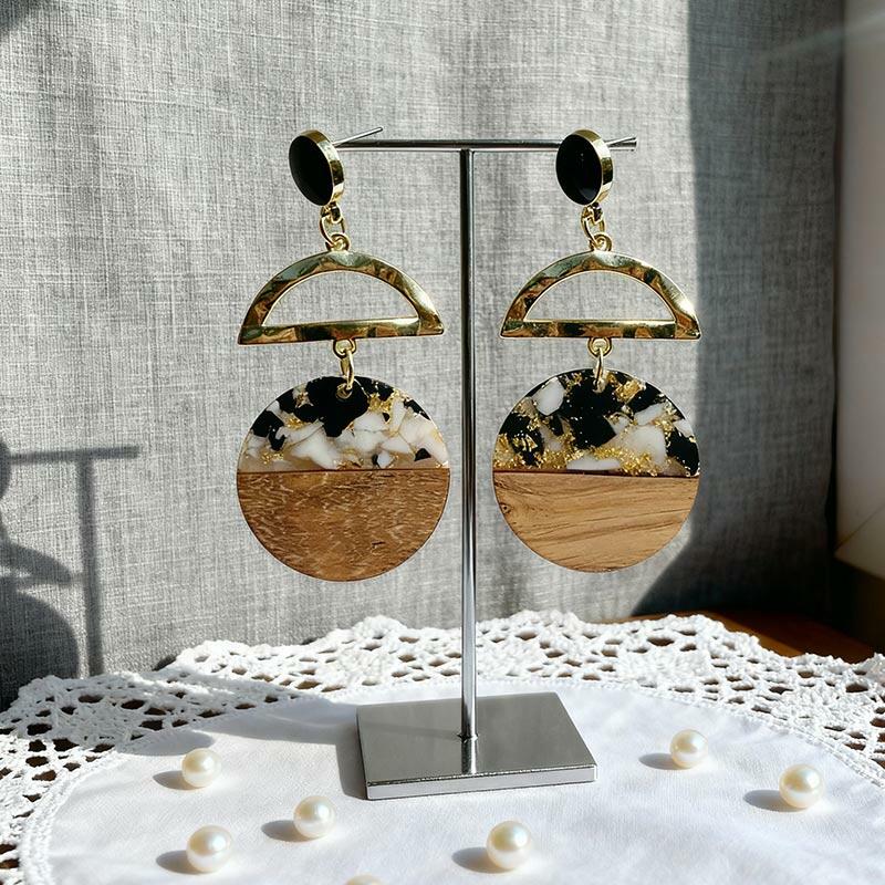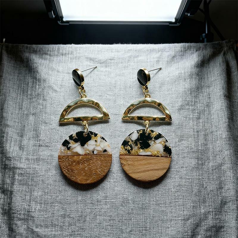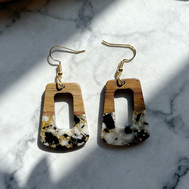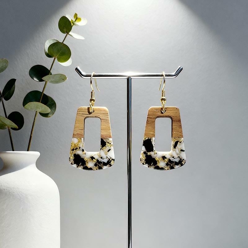 Luxury Handmade Resin-Wood Earrings with Gold Foil – Elevate your style with these unique, lightweight dangle earrings crafted from eco-friendly resin and wood. Each pair features elegant gold foil accents for a touch of sophistication, making them perfect for boho, minimalist, or everyday chic looks.