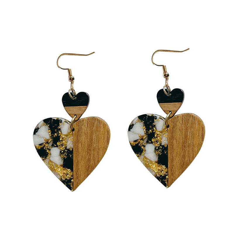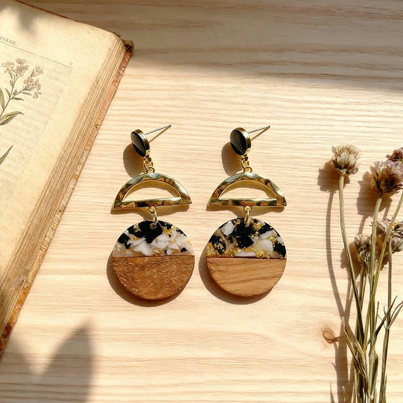 Popular Handmade Resin & Wood Earrings – Gold Foil Luxury, Unique Boho Chic Dangle Earrings
