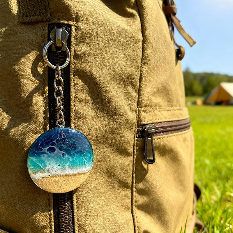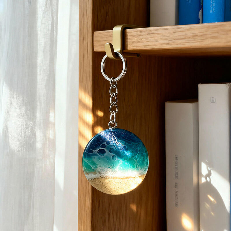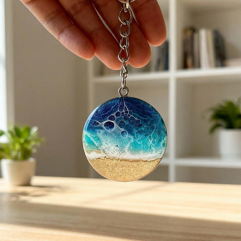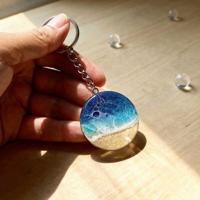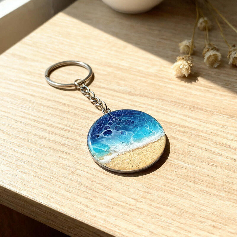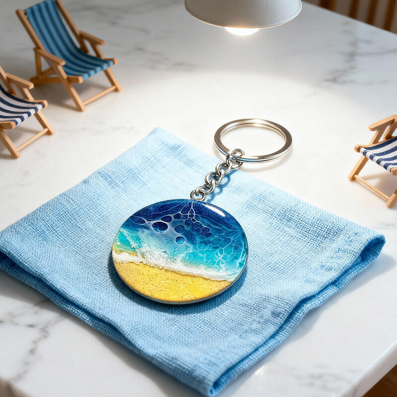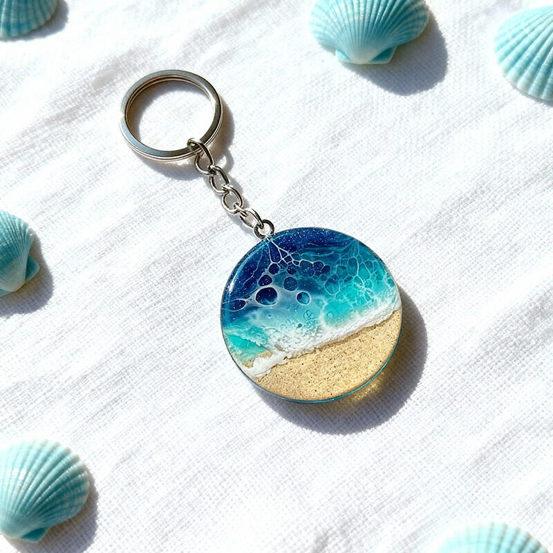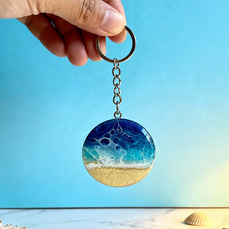 Popular Round Sand & Sea Design Resin Keychain – Unique Ocean Theme Gift