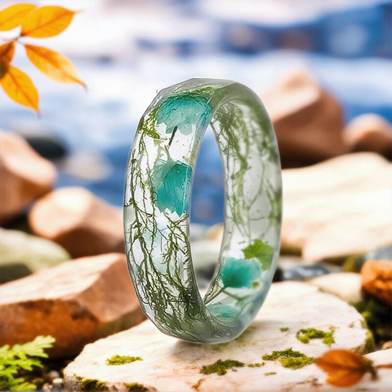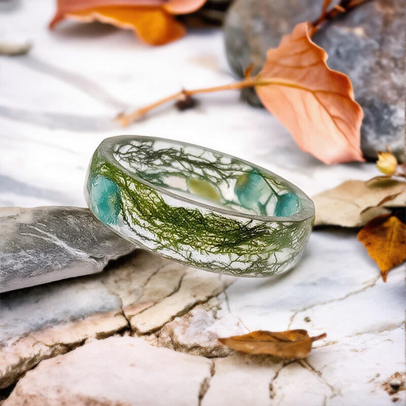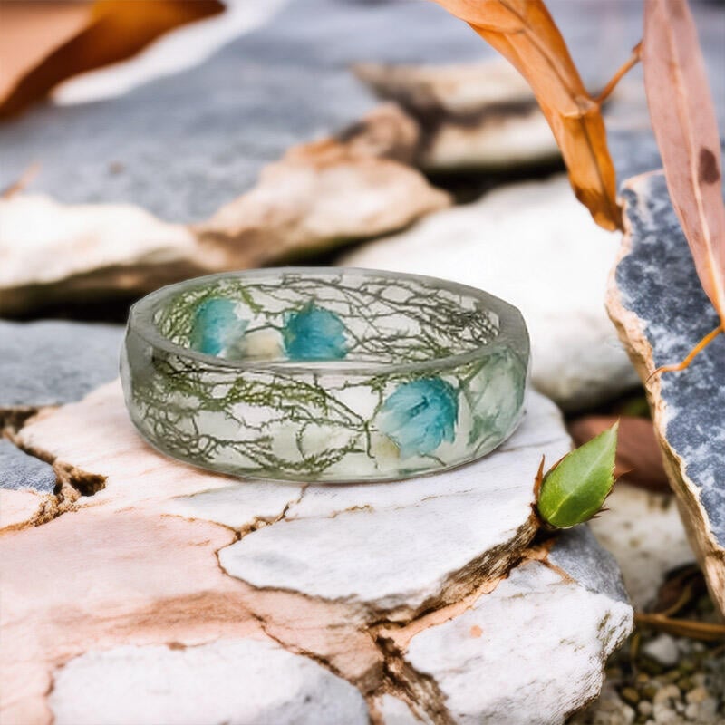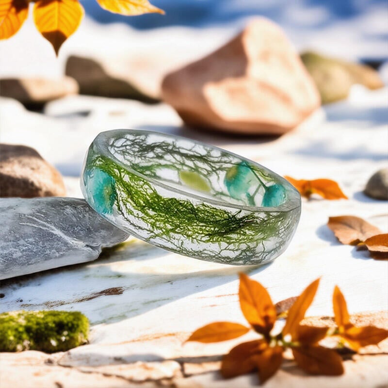 Handmade Real Moss & Flower Resin Ring – Celebrate nature’s beauty with this unique botanical jewelry piece. Each ring is carefully crafted with preserved moss and flowers encased in clear resin, creating a one-of-a-kind accessory perfect for nature lovers.