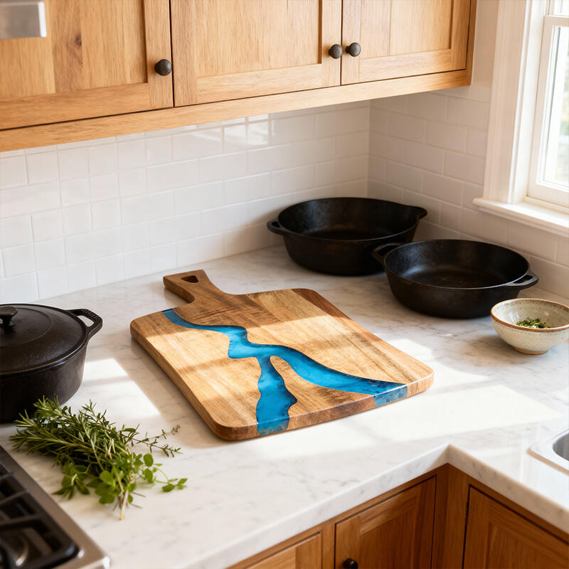 Rectangular Resin-Wood Cutting Board with Handle - Stunning Composite Chopping Board for Kitchen