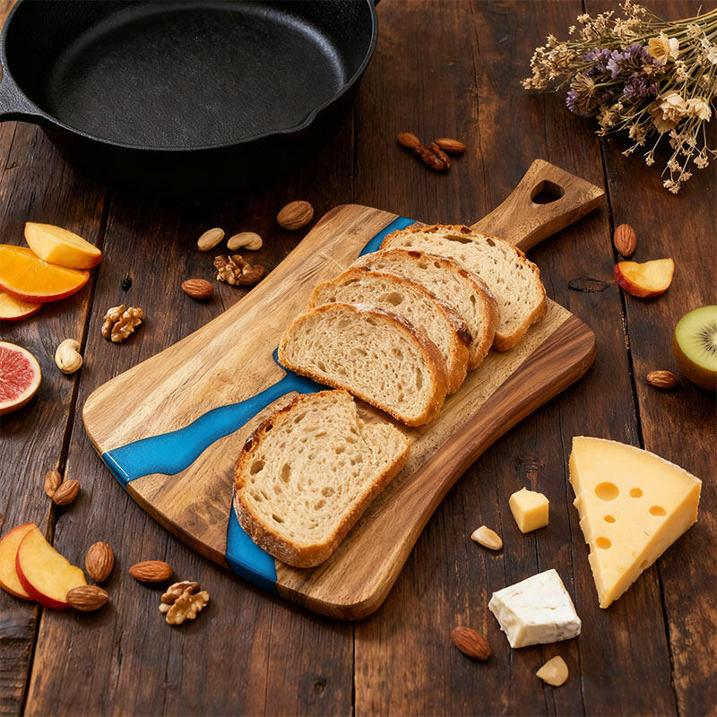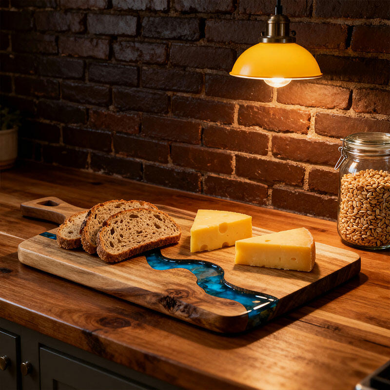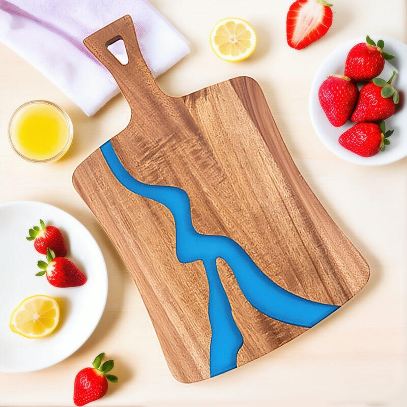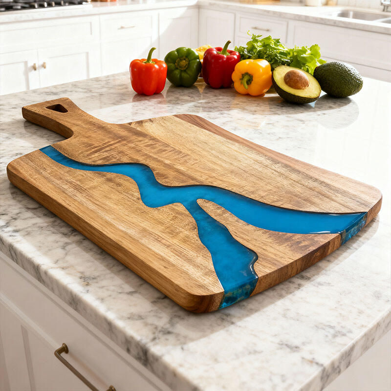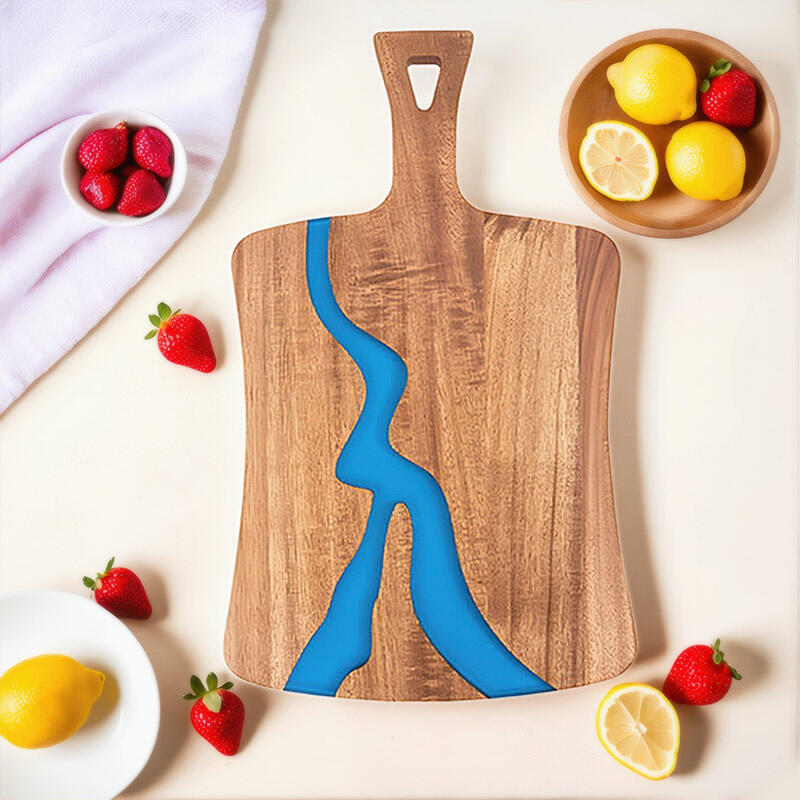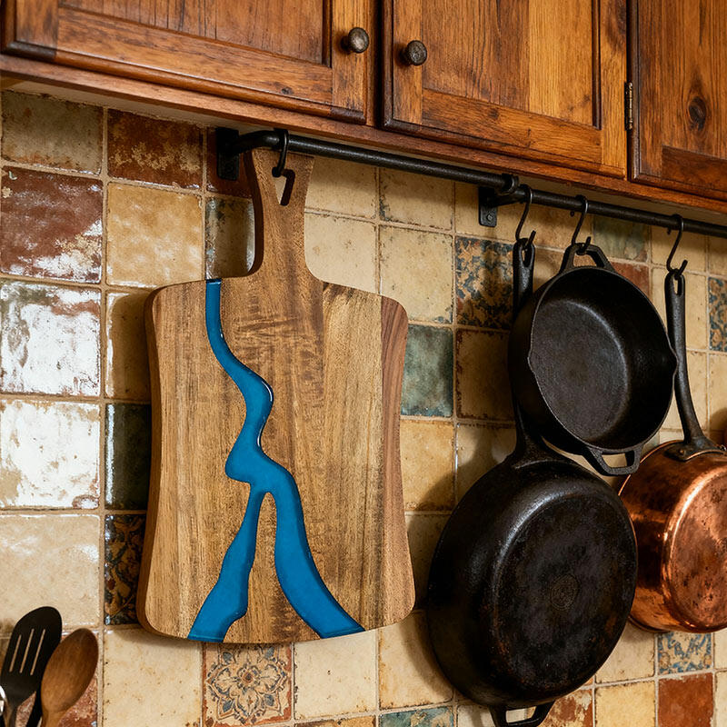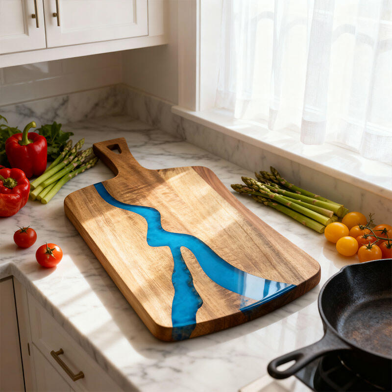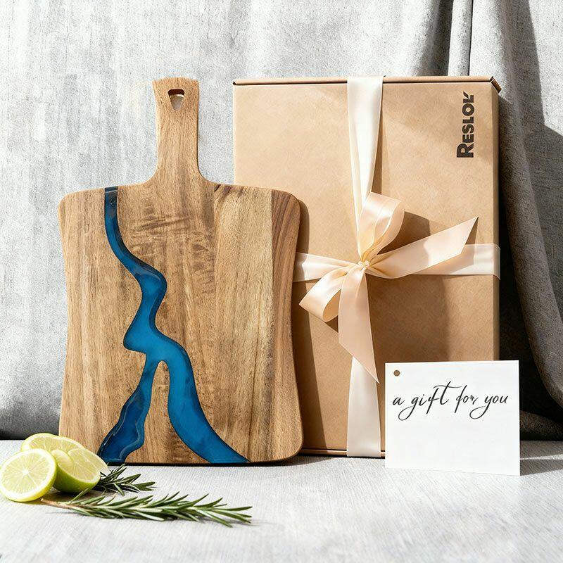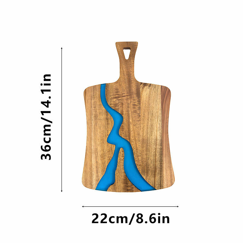 Crafted from high-quality resin and solid wood, this unique chopping board combines durability with natural elegance. Each piece is handcrafted, ensuring slight variations that add character.