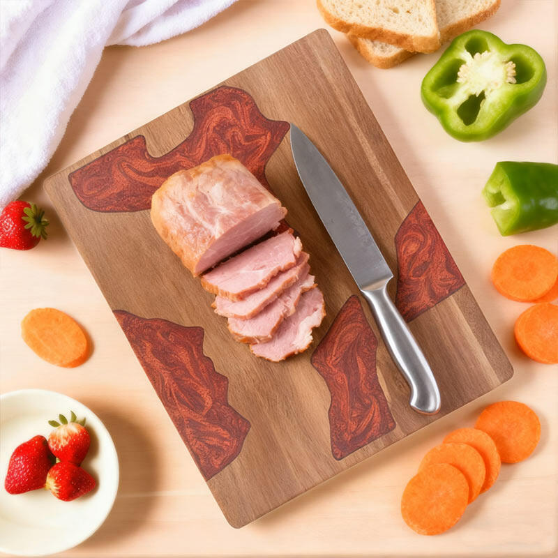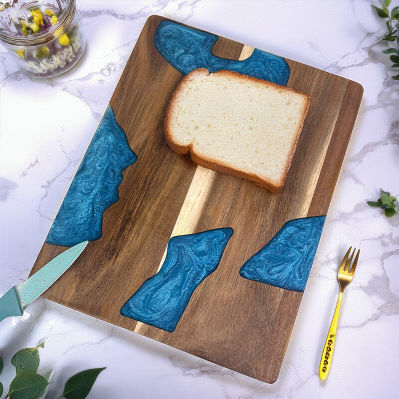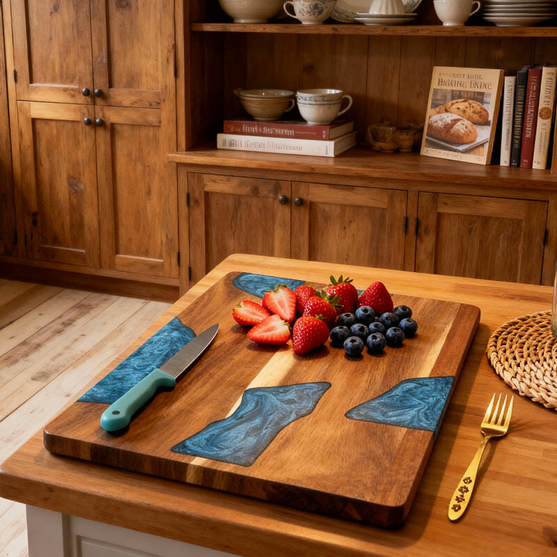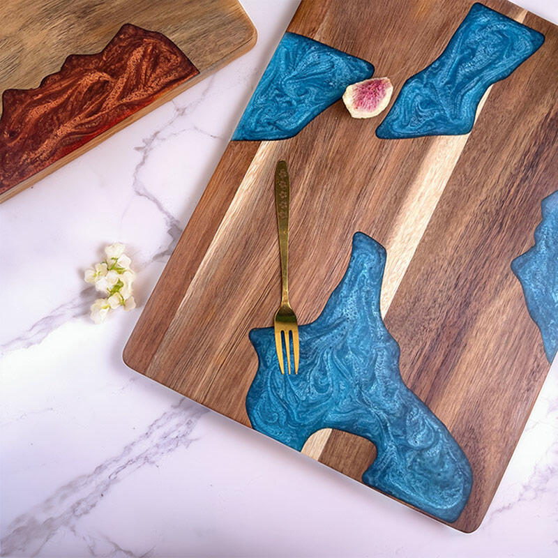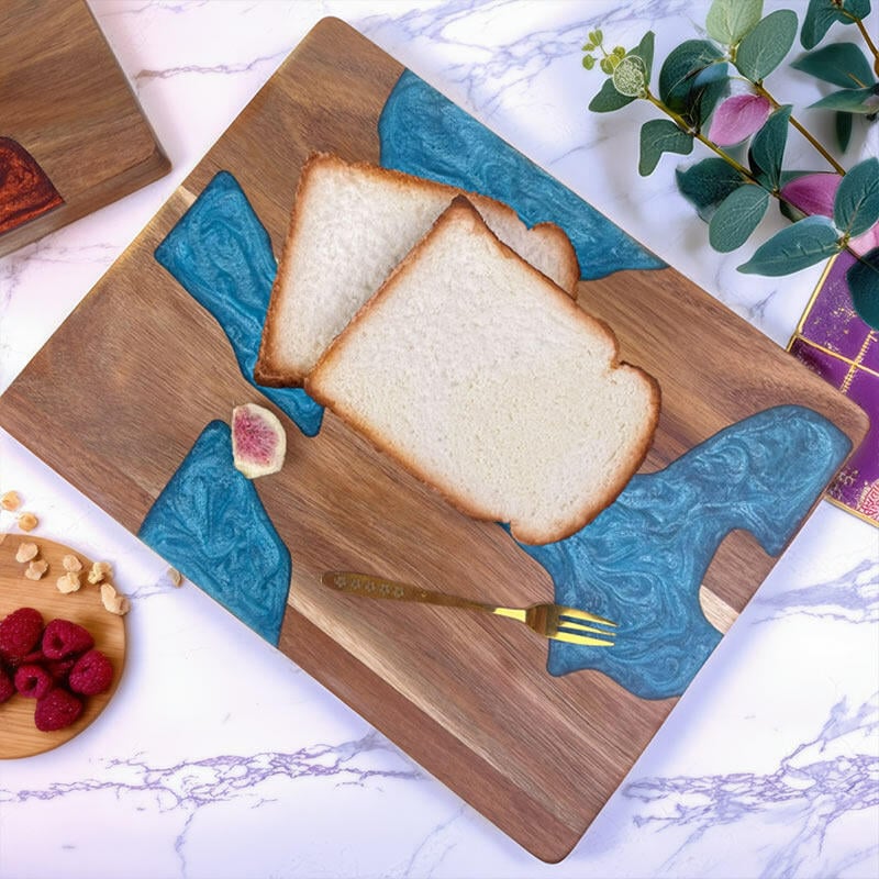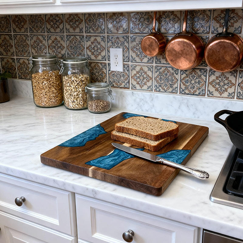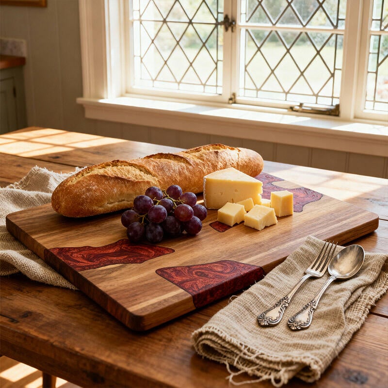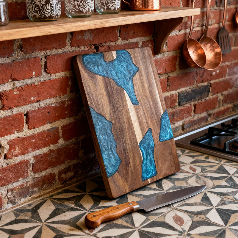 This handcrafted wood-resin cutting board combines professional functionality with stunning visual appeal: