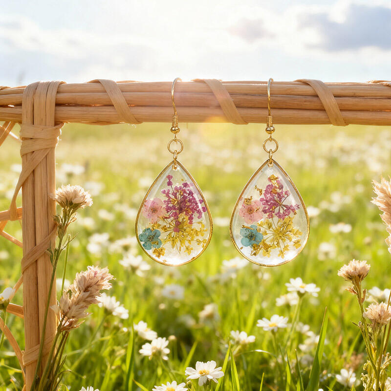 Elevate your style with these stunning handmade Resin Dried Flower Earrings featuring delicate gold foil accents. Inspired by French elegance, these earrings combine timeless sophistication with nature's beauty.