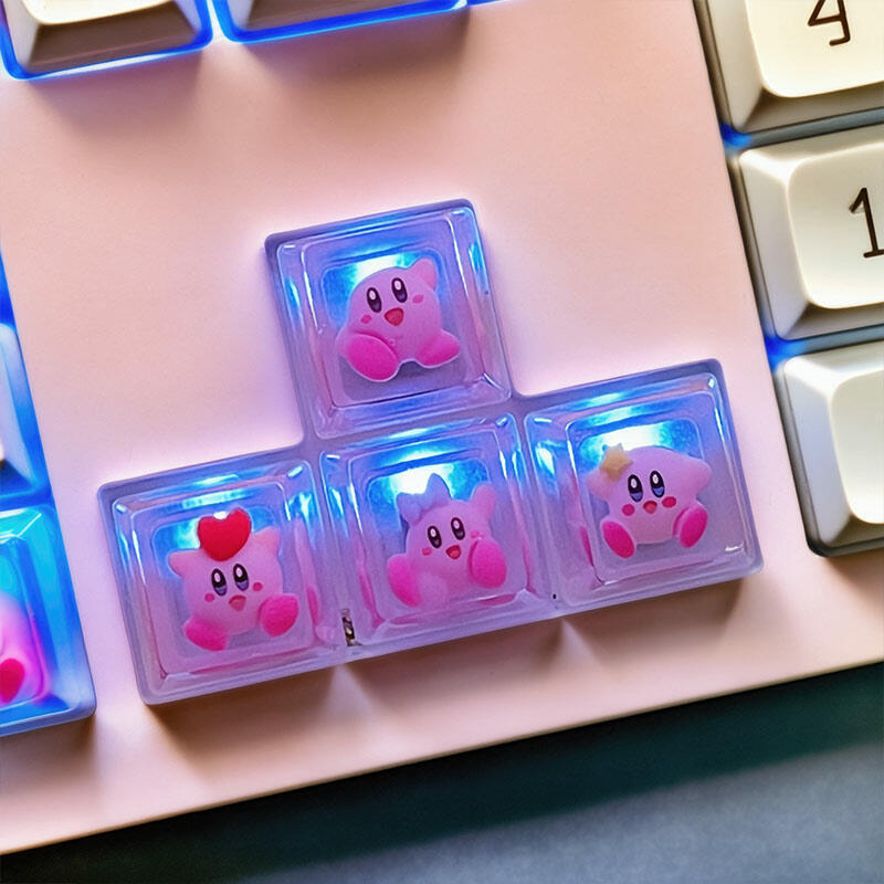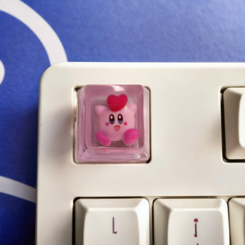 These keycaps are inspired by a beloved round, pink character from a popular game series. The iconic image of a cute pink blob is vividly presented on each keycap, bringing a whimsical gaming world right to your fingertips.