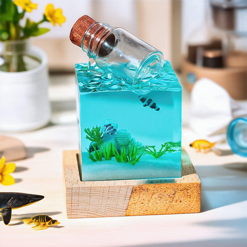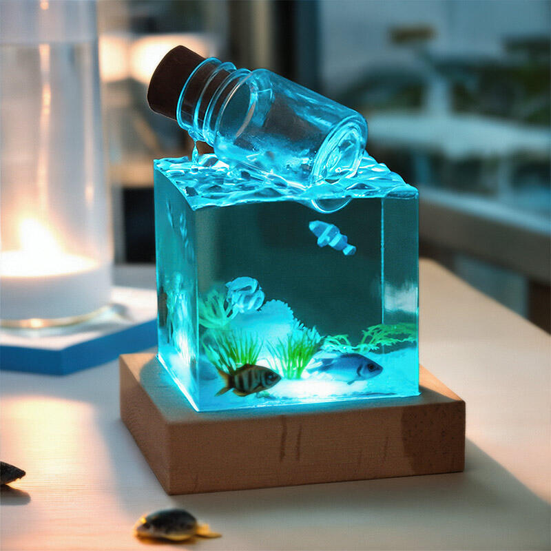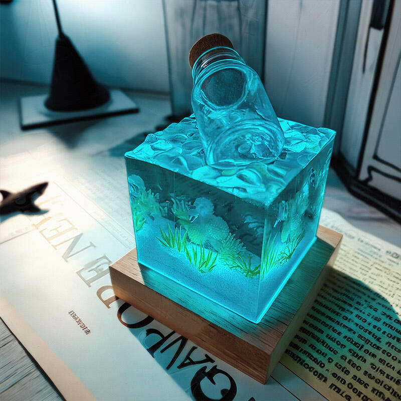 Hey, fans of ocean-inspired art! Reslol presents this alluring aquatic-themed resin night lamp with a drift-bottle charm.