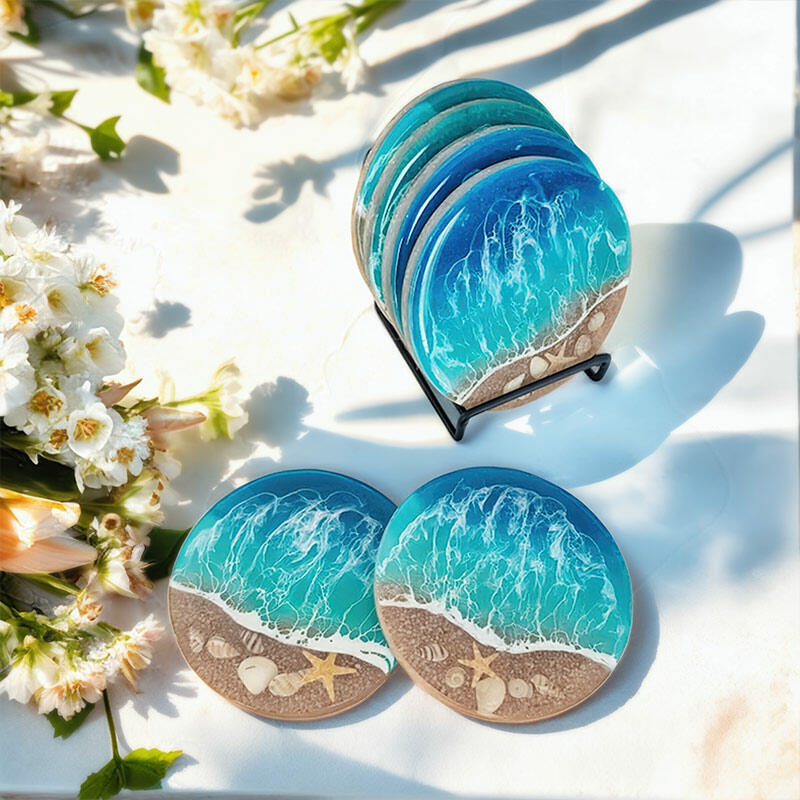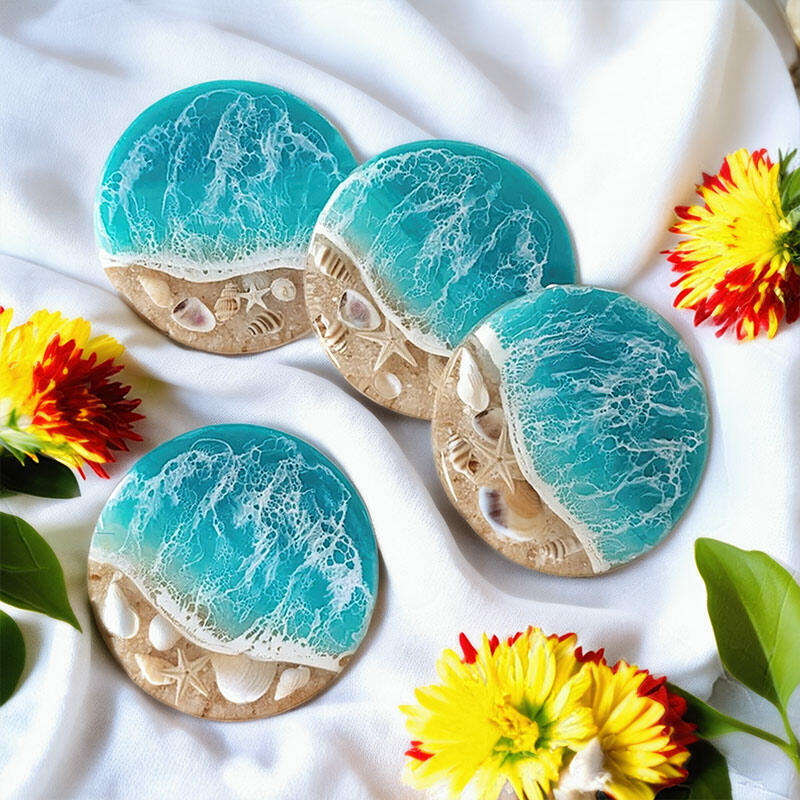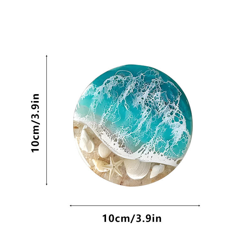 Hey, fans of the ocean! Feast your eyes on our Reslol's alluring round coasters. Inspired by the ocean, these coasters capture the magic of the sea with elements like waves, shells, and starfish.