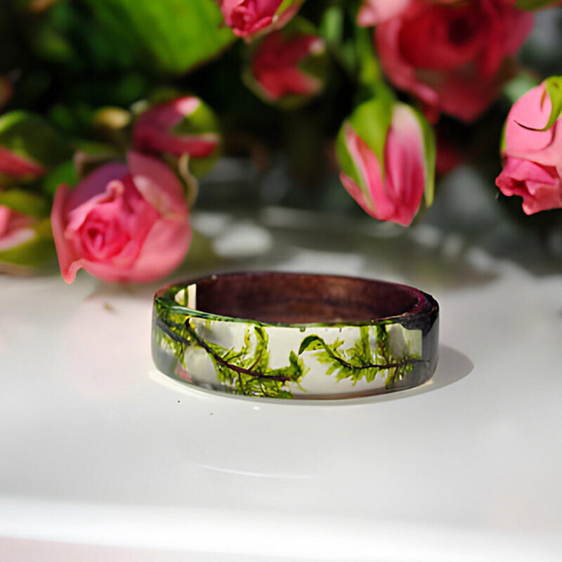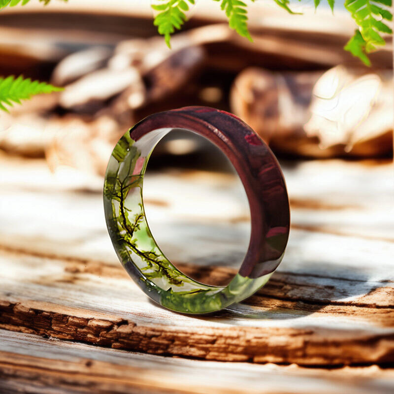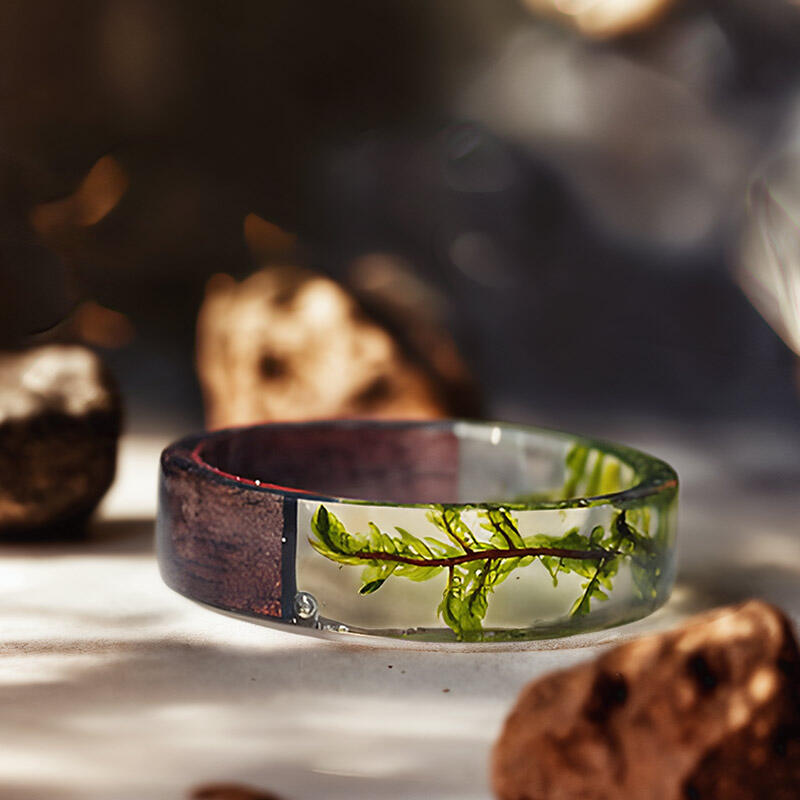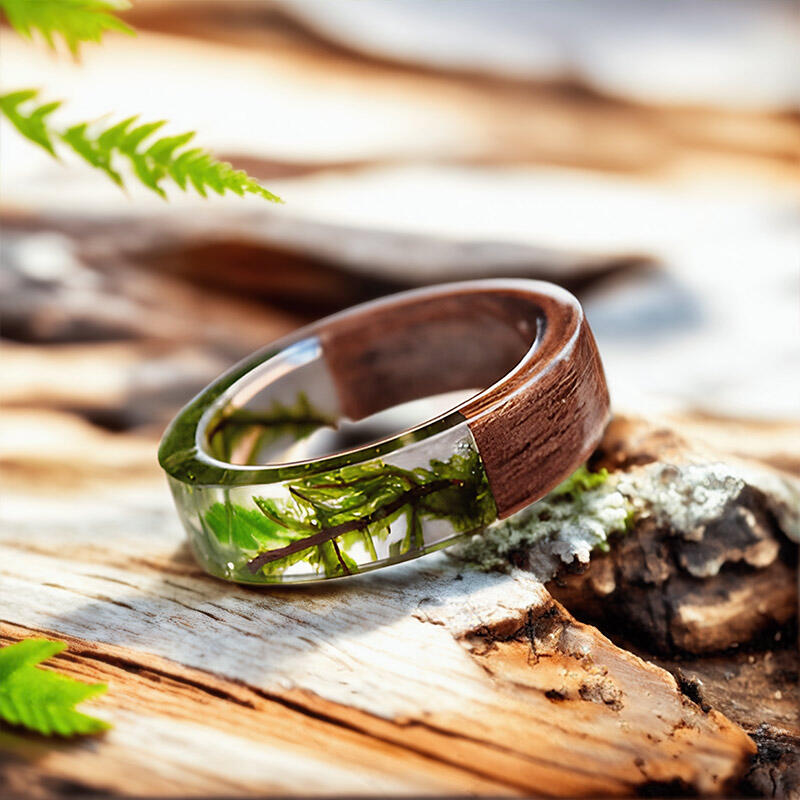 Our Reslol Artistic Natural Resin Fern Wood Ring is a unique piece that combines the beauty of nature with fine craftsmanship. This ring features real ferns integrated with natural resin and wood, creating a harmonious blend of elements.