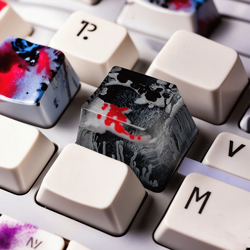 Each keycap features a stunning design of aquatic life in motion. The vibrant color palette captures the essence of flowing water, with dynamic silhouettes that appear to dance beneath the surface. Our premium epoxy resin creates a captivating three-dimensional effect, making the designs seem to come alive with depth and movement.