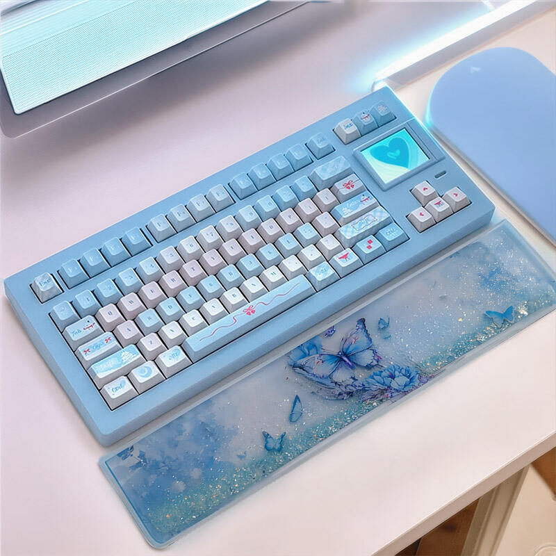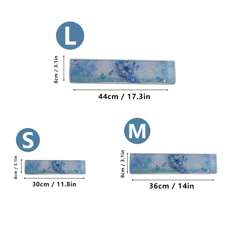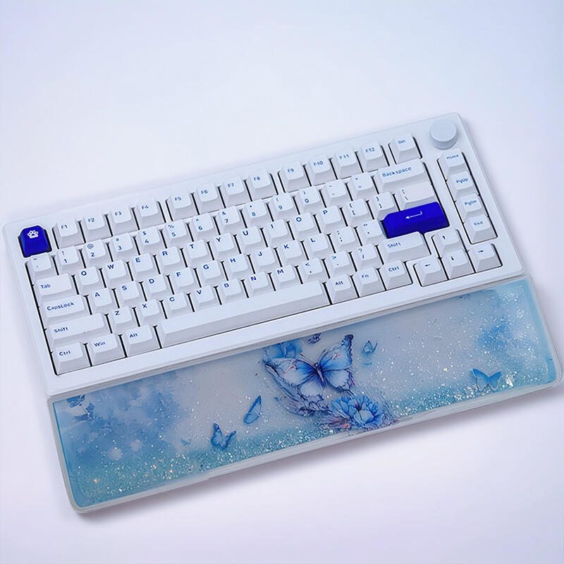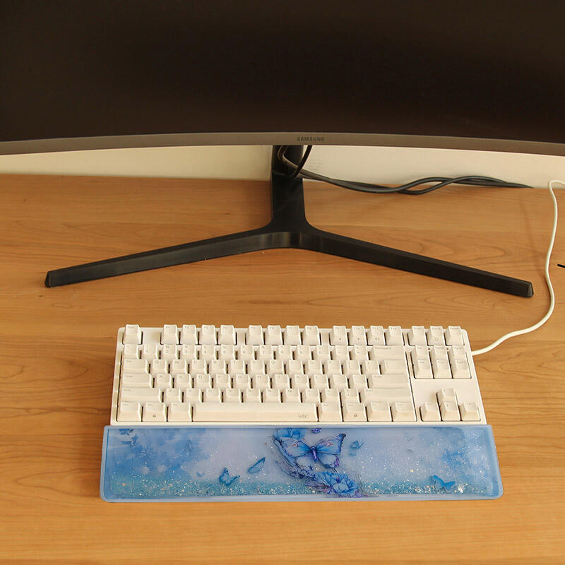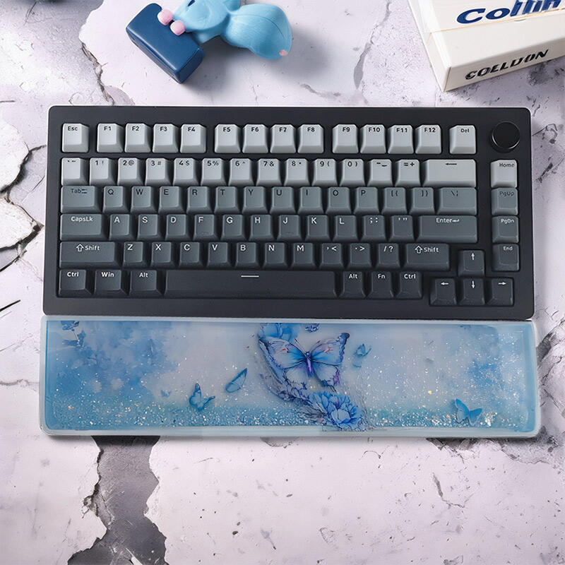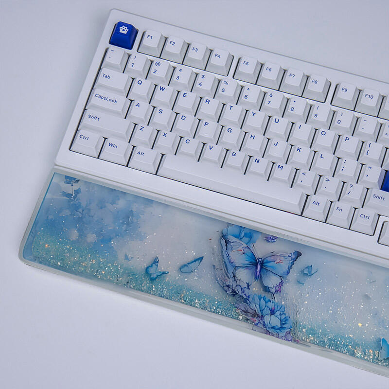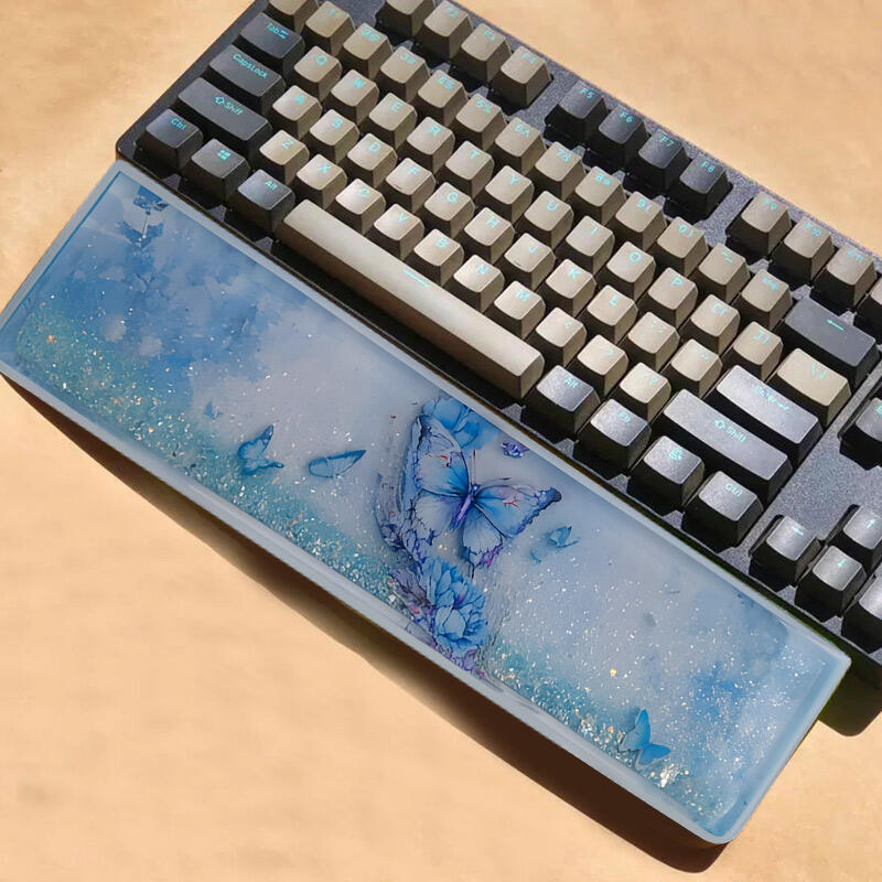 Dear nature lovers and keyboard enthusiasts! Welcome to the world of Reslol resin wrist rests, a unique piece adorned with the enchanting beauty of blue butterflies and flowing sand.