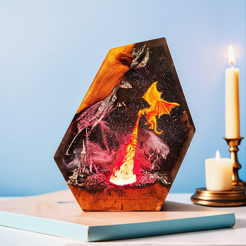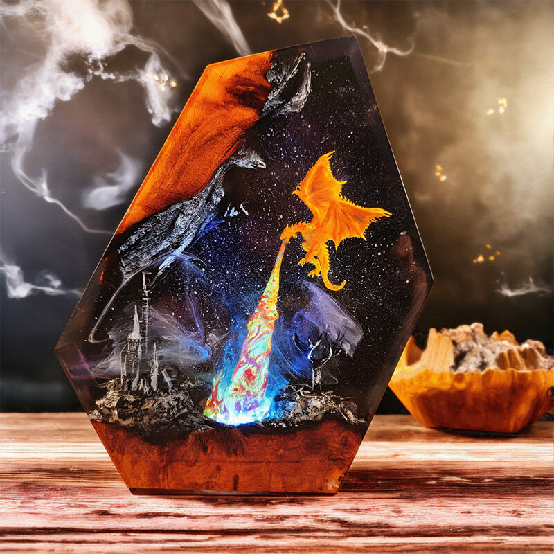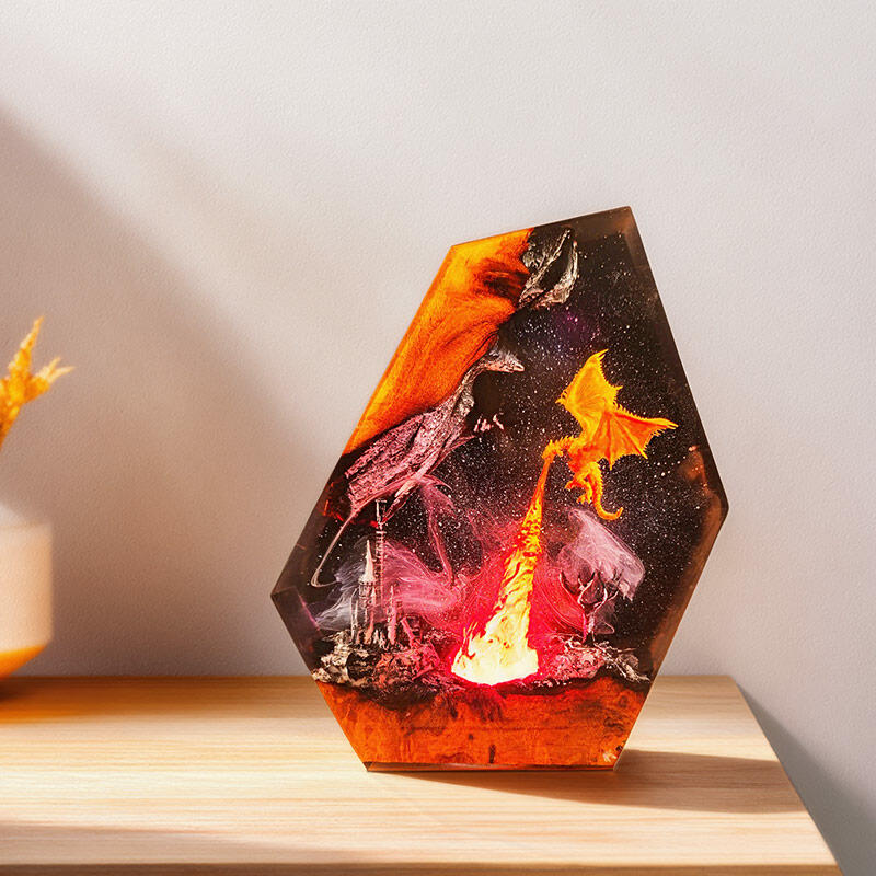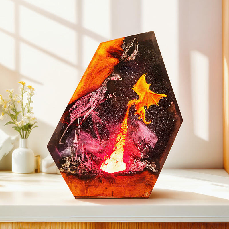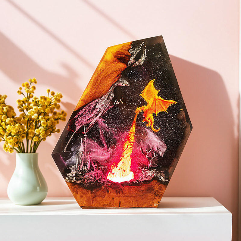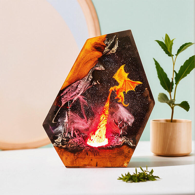 Reslol Breathtaking Fire-breathing Dragon Irregular Resin Lamp