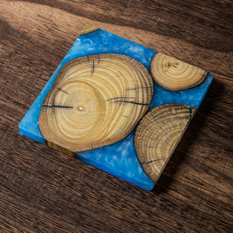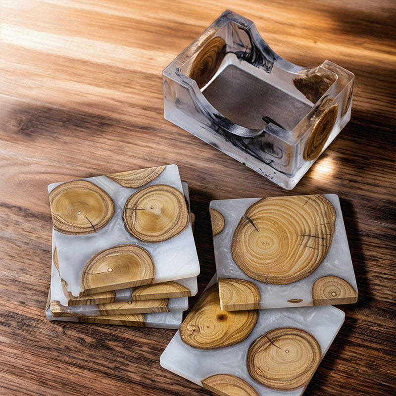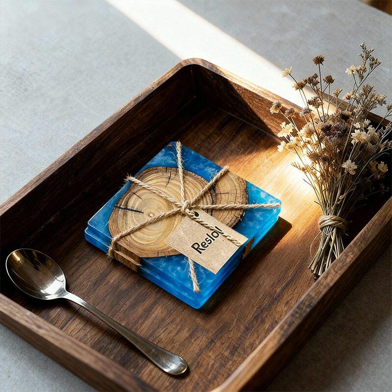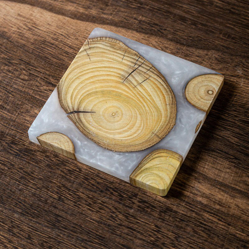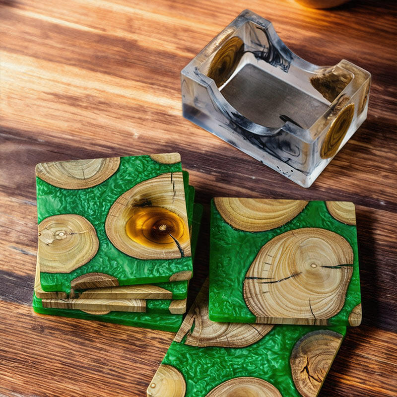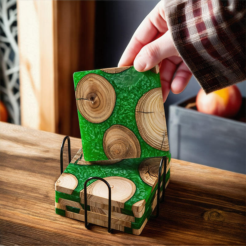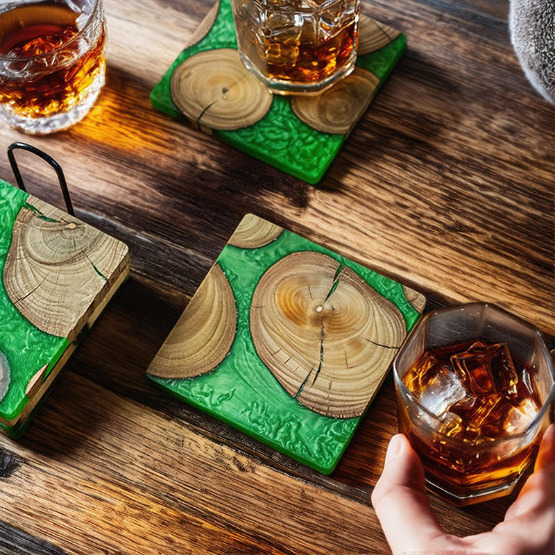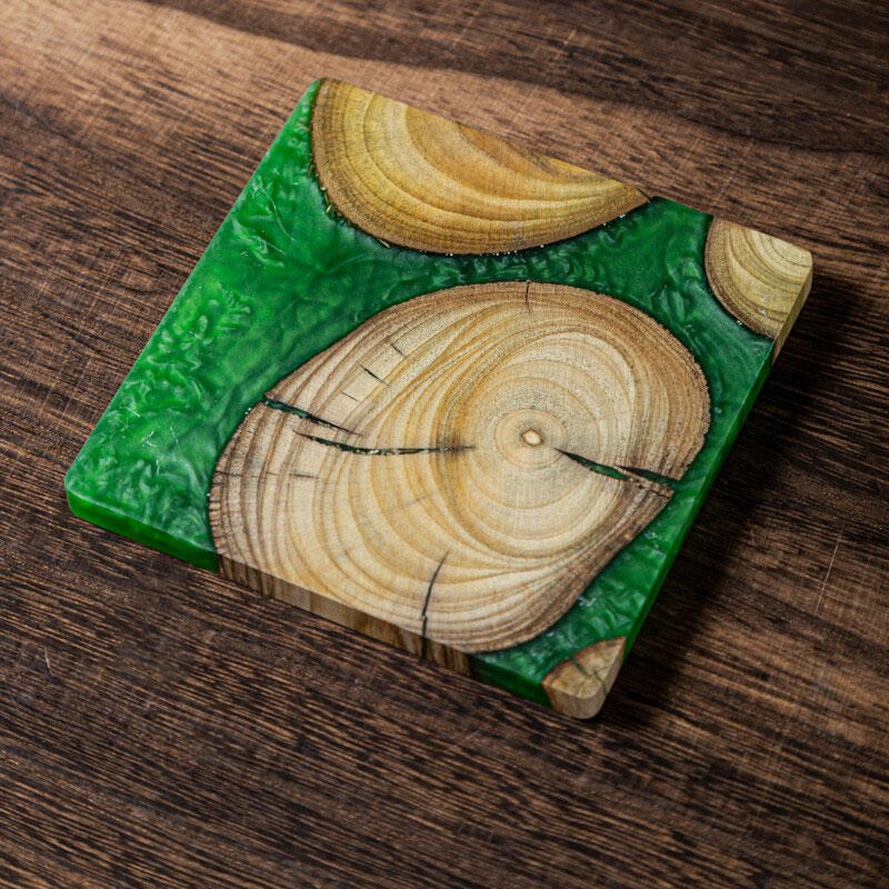 Let me introduce you to our Reslol charming epoxy-boxwood square coasters. These coasters are a beautiful blend of nature's charm and modern craftsmanship.
