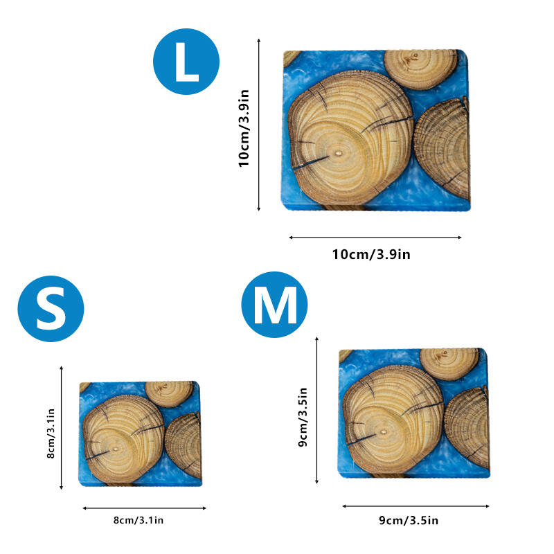 The epoxy resin takes these coasters to the next level. The green epoxy-coated coasters bring a touch of freshness, like a breath of spring. The white ones exude elegance and purity, perfect for adding a refined touch to any setting. The blue coasters, on the other hand, create a sense of calm and tranquility, reminiscent of a clear blue sky.