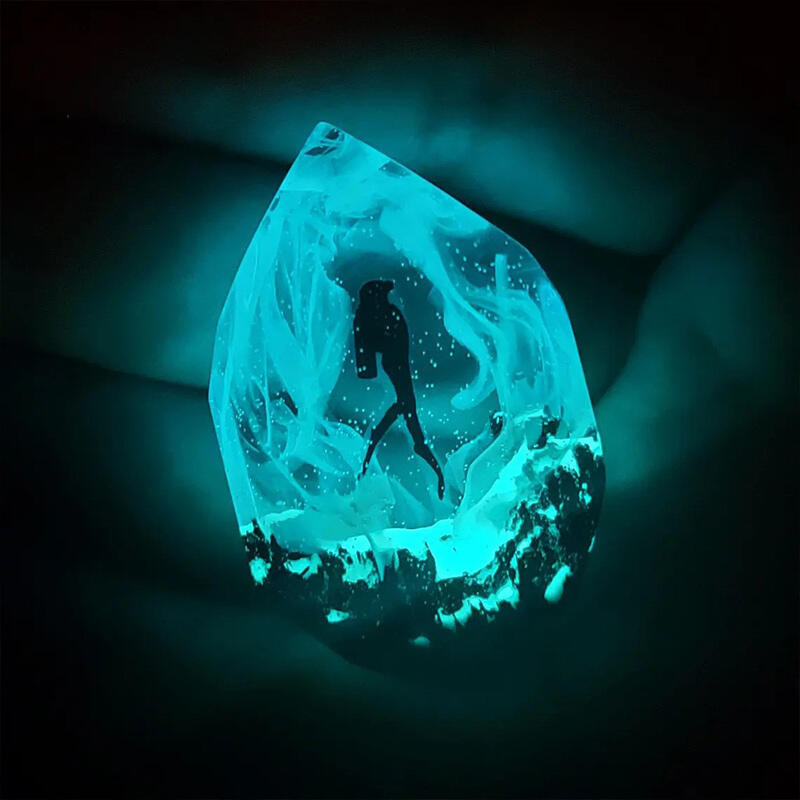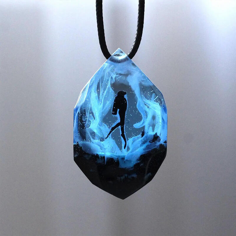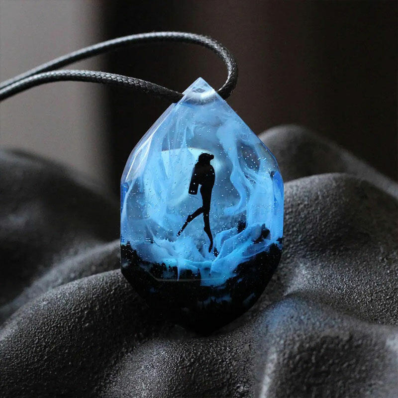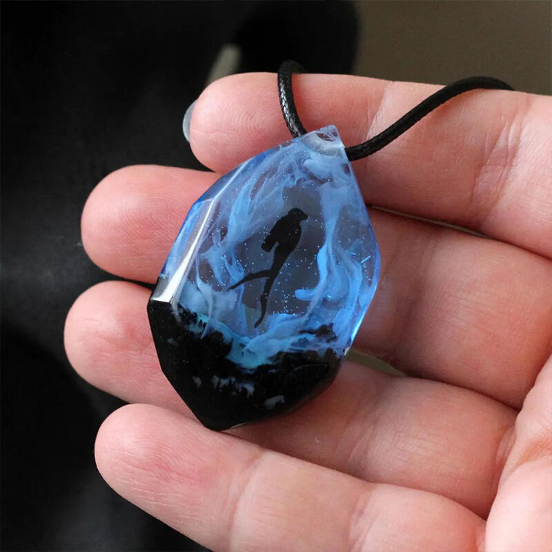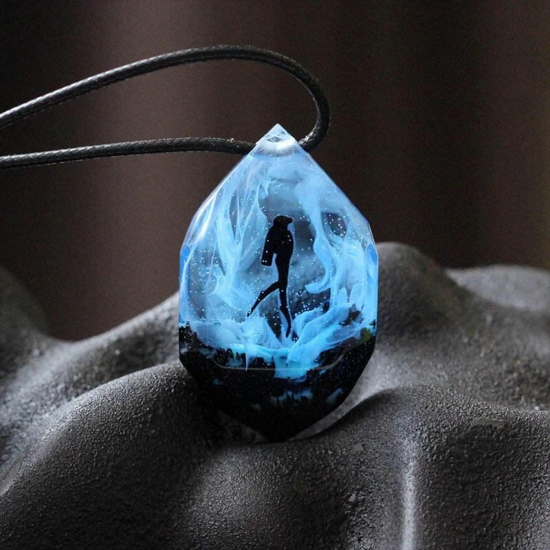 Our Reslol Cool Scuba Diver - themed Glow-in-the-Dark Handmade Necklace is a fantastic choice for those who have a passion for the underwater world. Handmade with great care by our skilled artisans, this necklace features a unique scuba diver pendant crafted from a combination of wood and resin.