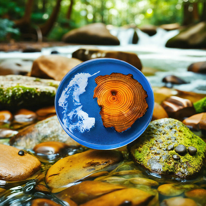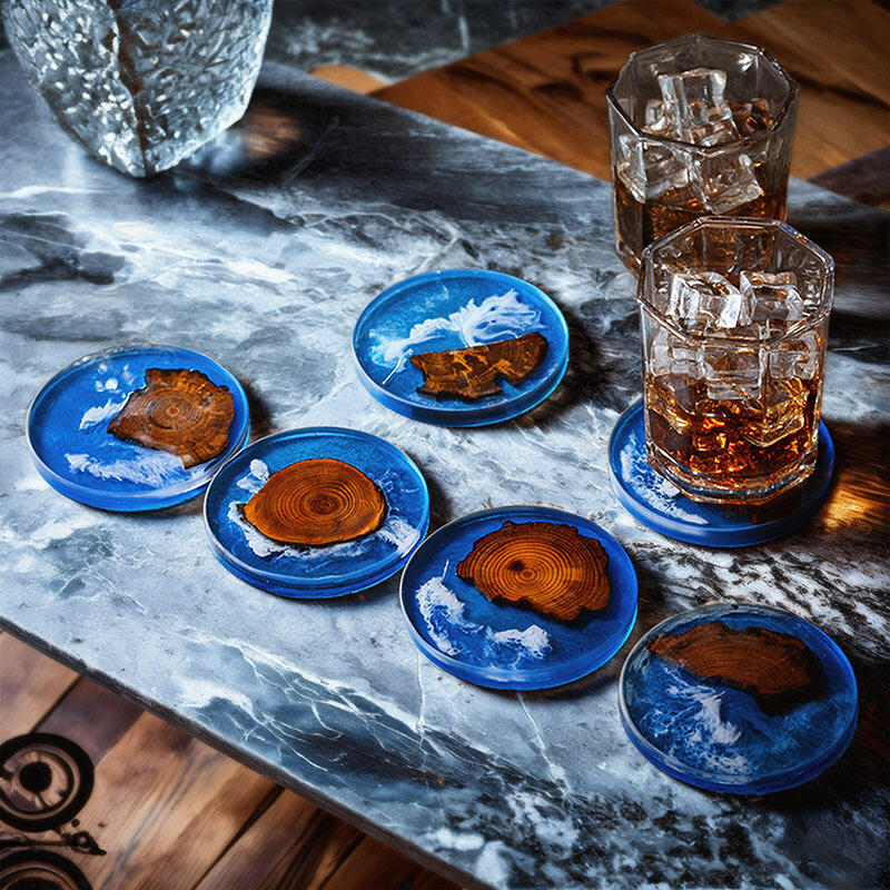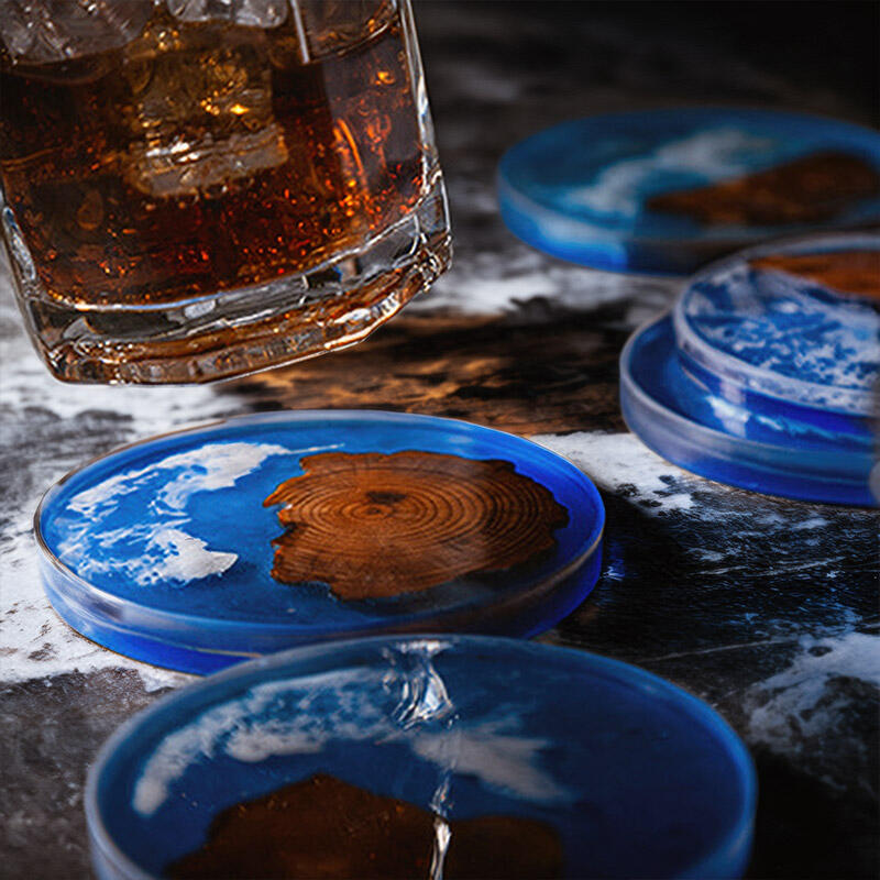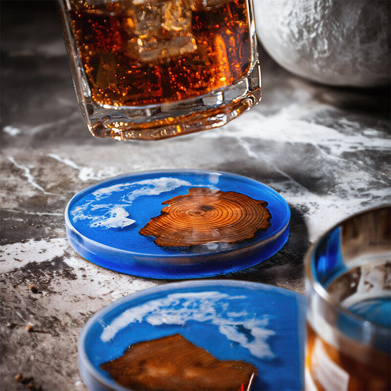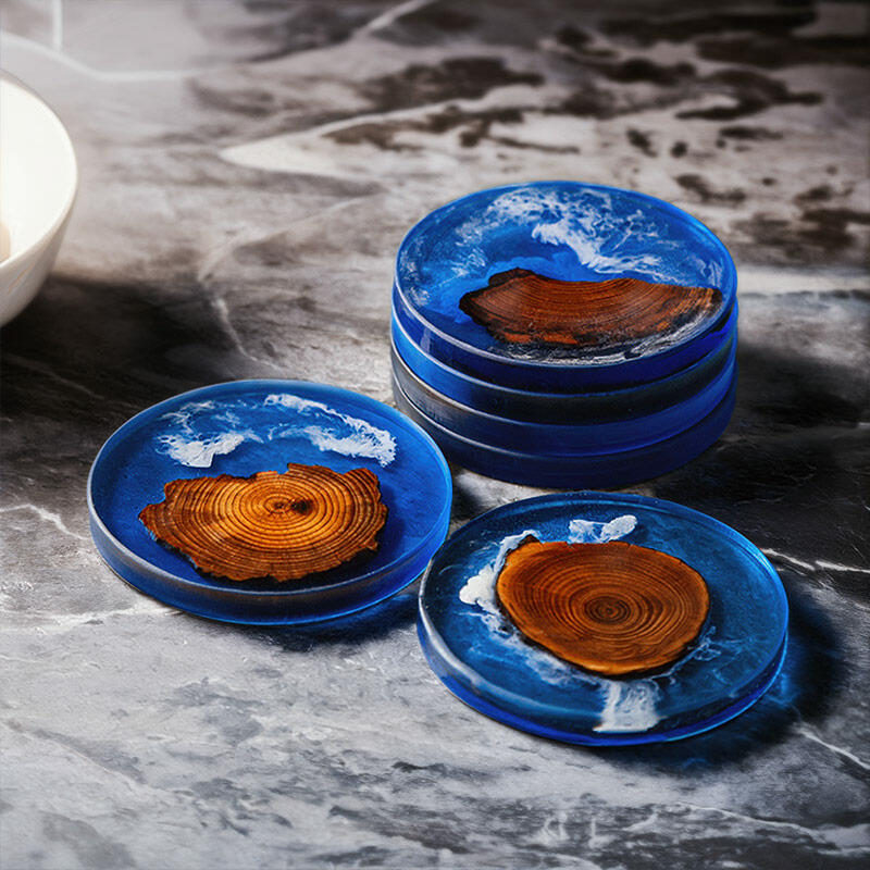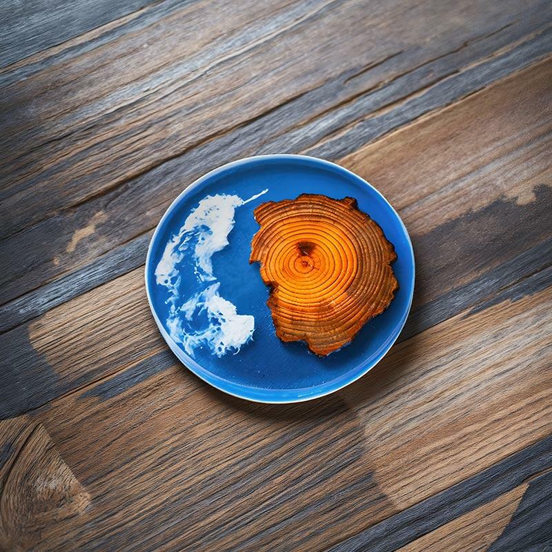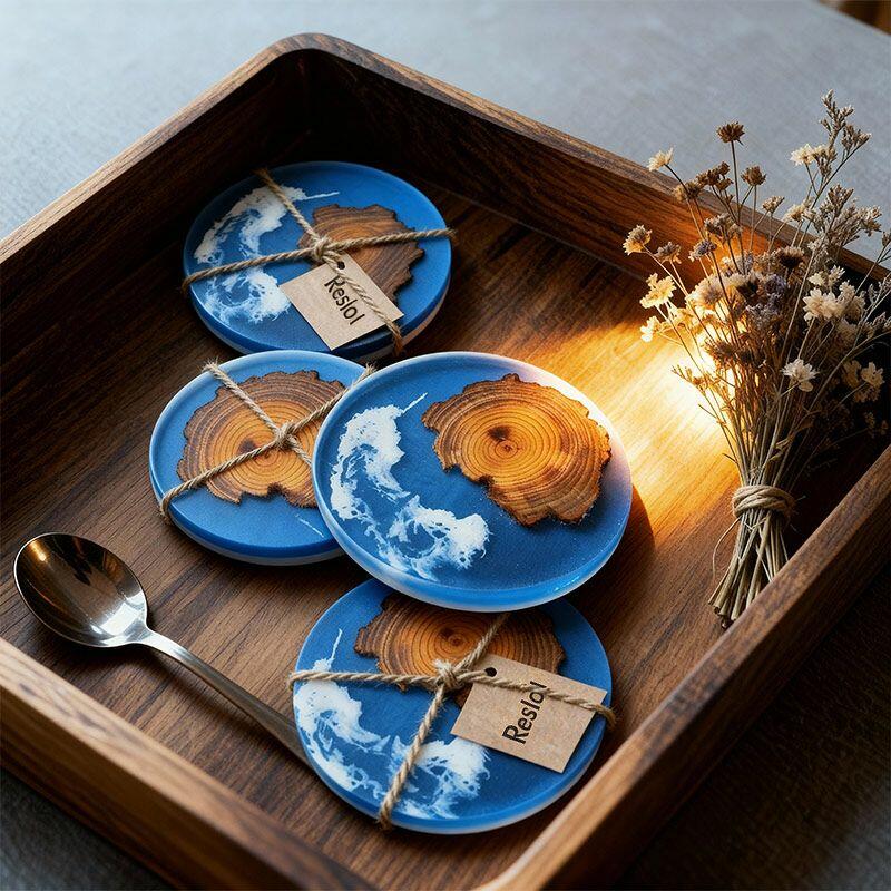 Our Reslol elegant blue pine epoxy round coasters are here to bring a touch of artistry to your space. These coasters are a beautiful blend of pine wood slices and resin, enhanced with the captivating Klein blue element and a stunning splatter design.