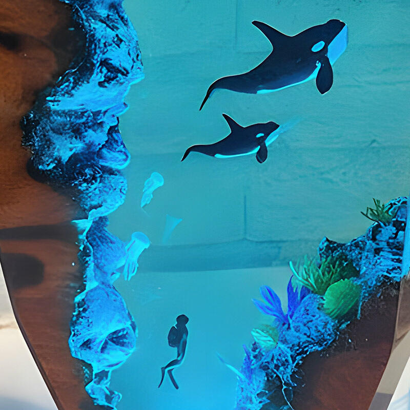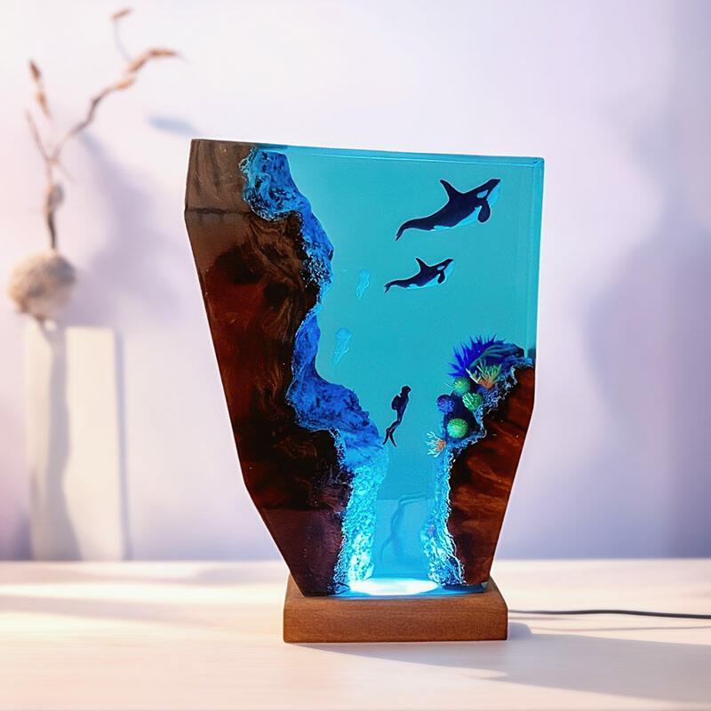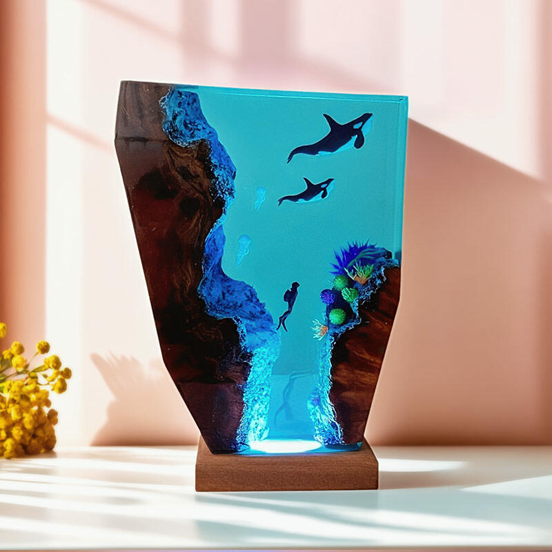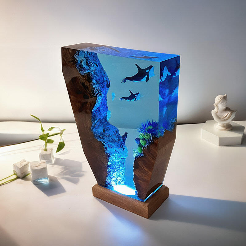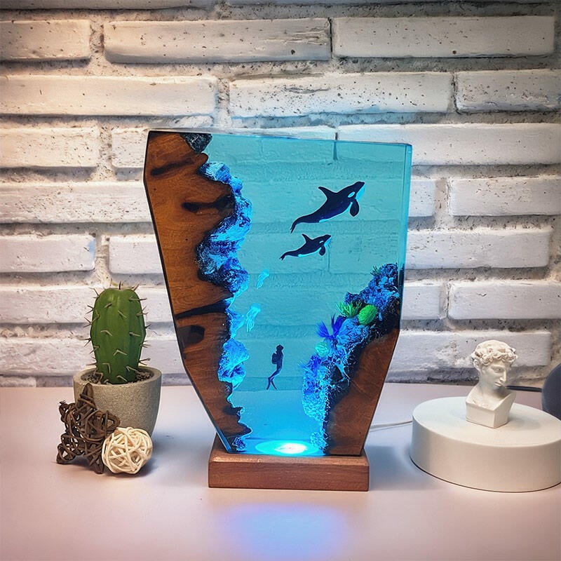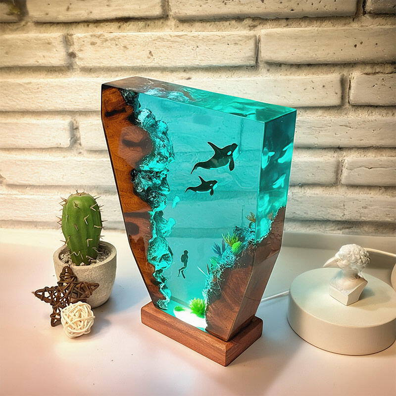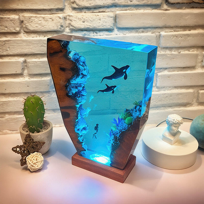 Hey there, fans of the ocean's adventures! Reslol brings you this enchanting resin lamp, inspired by the thrilling tales of divers and the magnificent orcas.