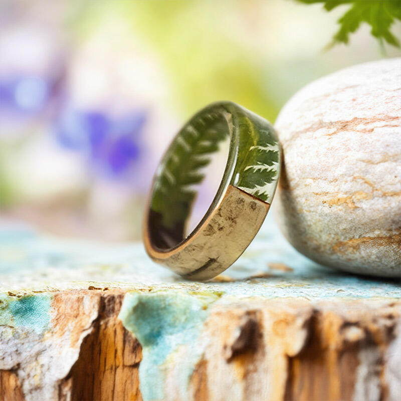 This ring features real leaves, carefully selected and preserved, embedded in natural resin. The leaves bring a touch of the forest right to your finger, creating a connection to the natural world. The natural resin not only protects the leaves but also gives the ring a clear, shiny finish that enhances their beauty.