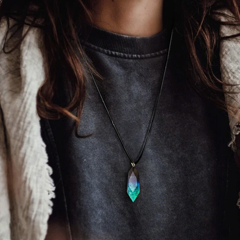 Dear element lovers, behold our Reslol resin necklace. This isn't just an ordinary piece of jewelry, it's a work of art inspired by the captivating northern lights. Crafted with great care from resin and other materials, it features a pendant that glows in the dark, mimicking the magical display of the aurora.