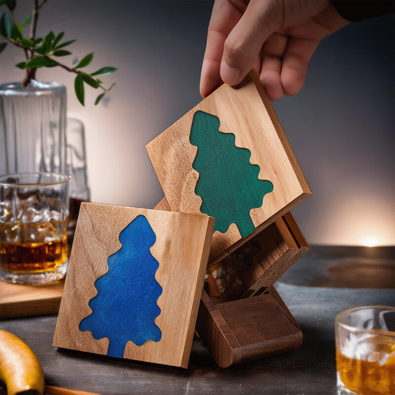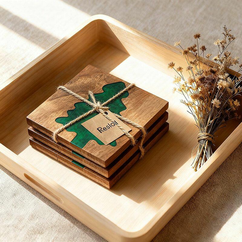 Welcome to discover our Reslol enchanting resin-walnut Christmas tree coasters. These coasters are a wonderful blend of artistry, natural beauty, and holiday spirit.