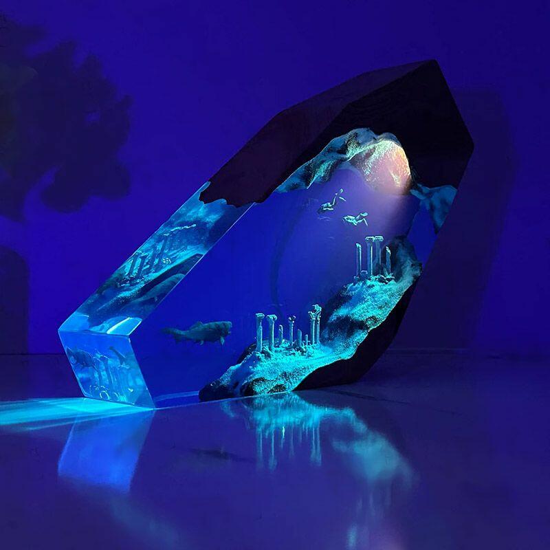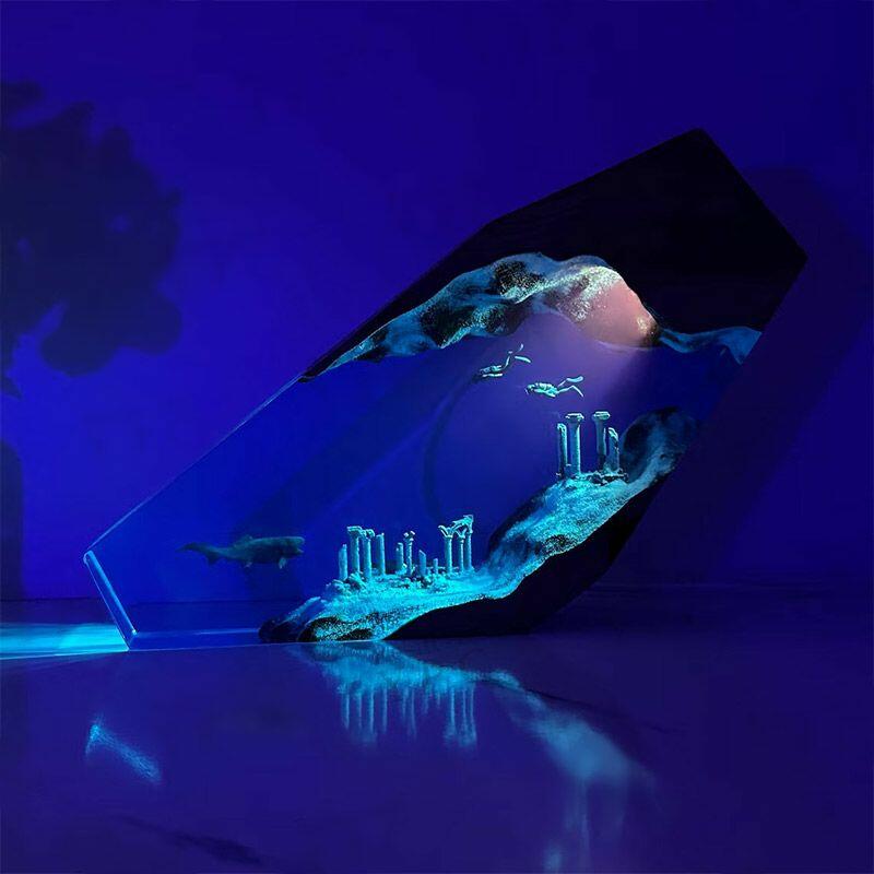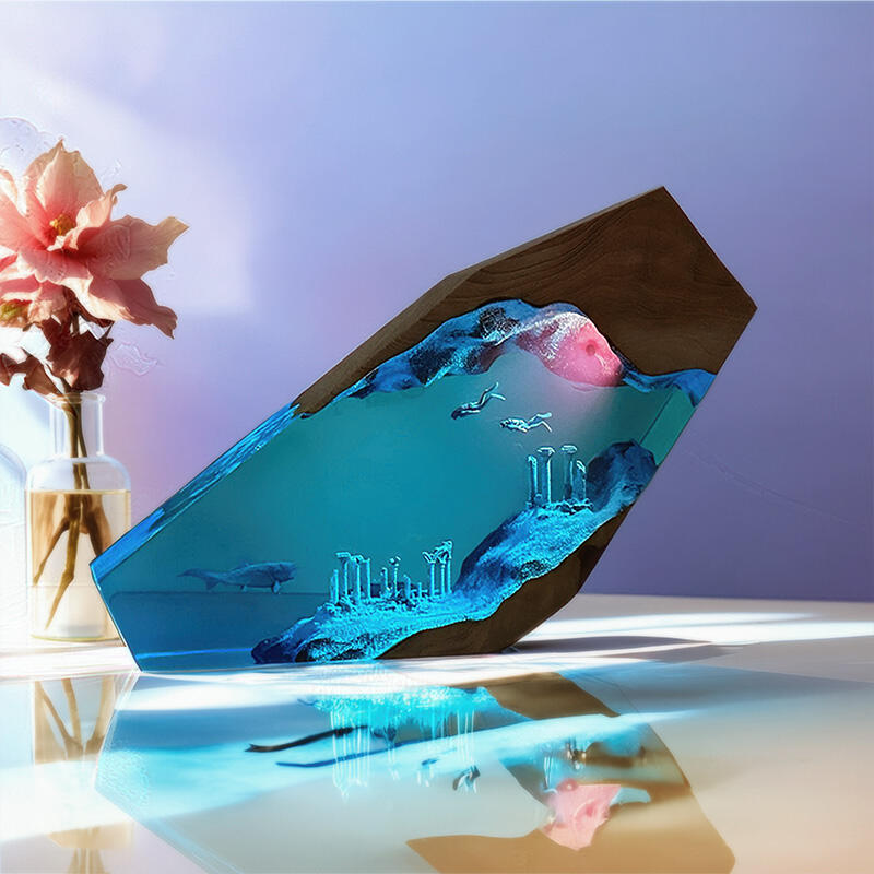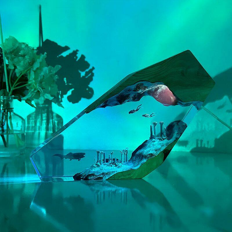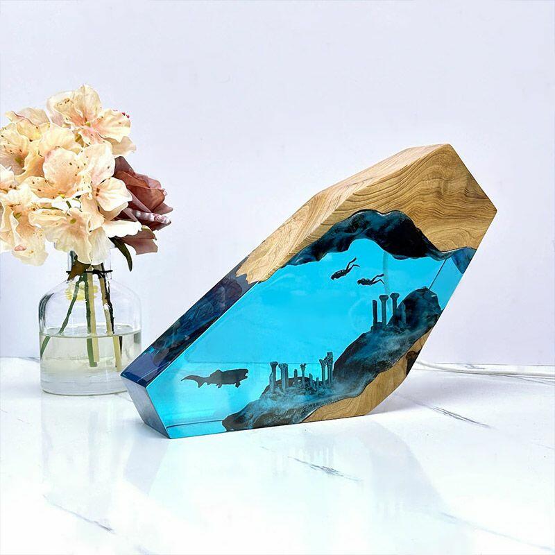 Reslol’s Vintage Ocean Explorer Resin Lamp blends nostalgia with marine artistry, featuring a dynamic duo: a shark and diver exploring sunken relics, all encased in hand-poured resin and natural wood. This irregularly shaped masterpiece is more than a lamp—it’s a window to the ocean’s hidden stories, crafted for those who crave unique, meaningful decor.
