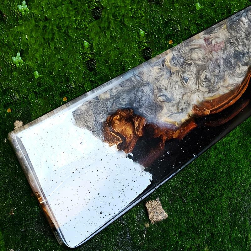 The sophisticated grey resin creates a mysterious and sleek look, while the premium zitan edge adds a touch of luxury. Each piece is meticulously handcrafted, embodying the true spirit of artisanal craftsmanship.
