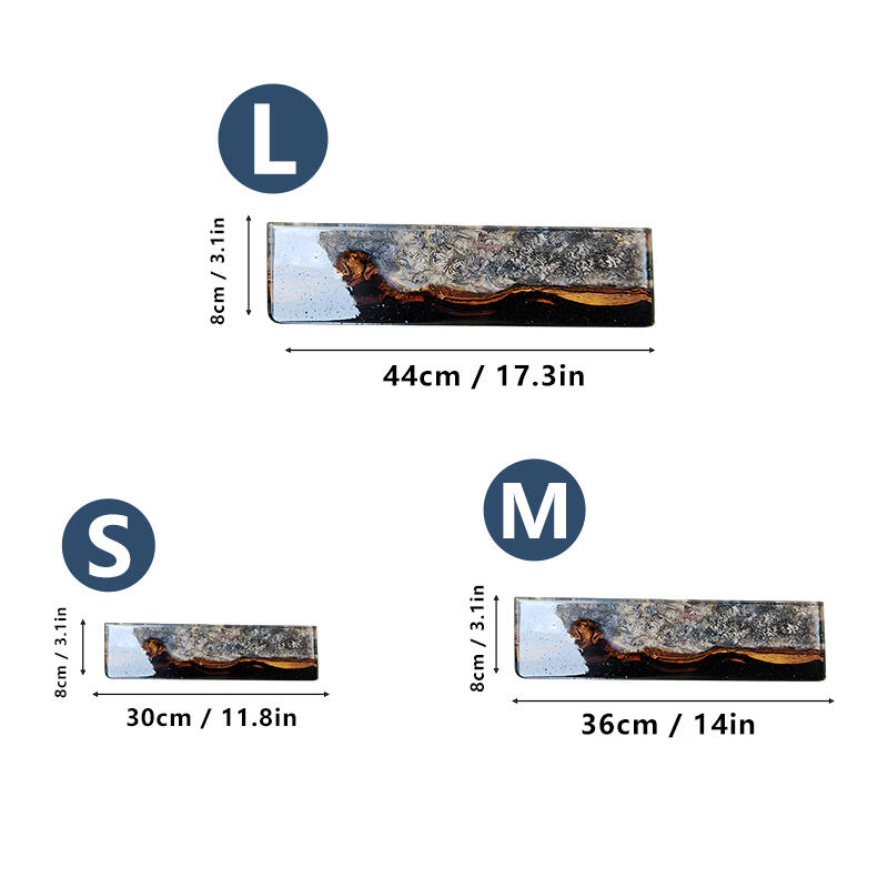 This wrist rest is not just a functional item but also a piece of art. Featuring an ergonomic 10-degree incline, it perfectly conforms to your wrist's natural curve, effectively reducing fatigue during extended gaming or work sessions. The front thickness is approximately 1.5 cm, gradually increasing to 2 cm at the back for optimal support.