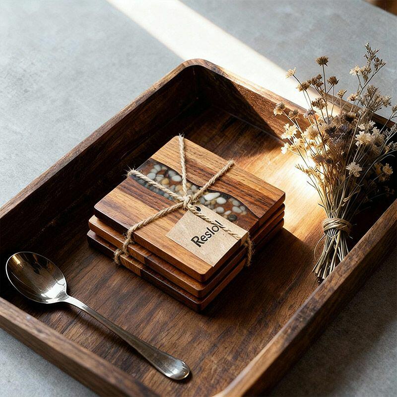 Introducing our Reslol stunning resin - walnut river stone coasters. These coasters are a masterpiece that marries the beauty of nature with modern craftsmanship.
