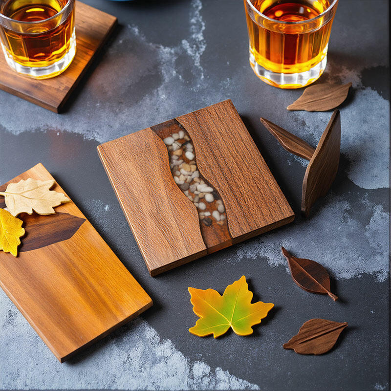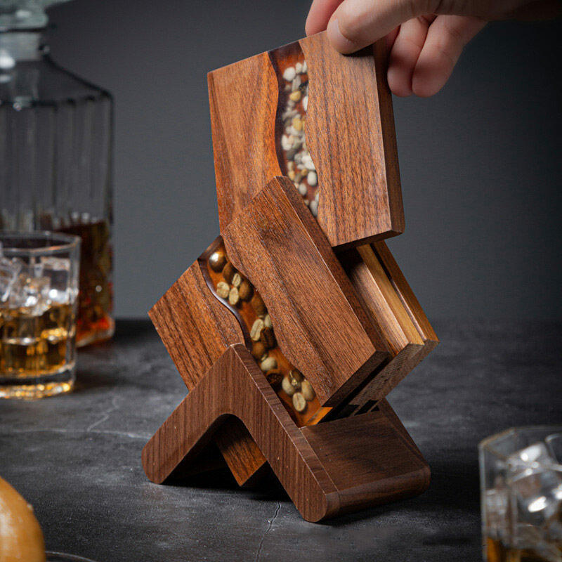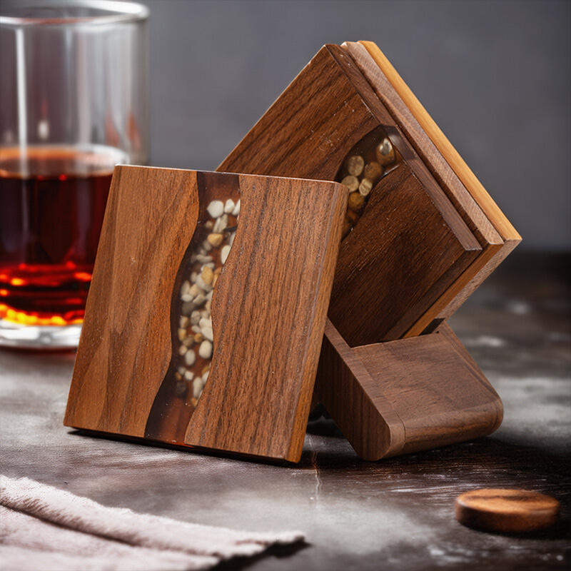 The resin is then skillfully incorporated, creating the illusion of a flowing river with stones. It not only protects the walnut but also adds a layer of transparency and gloss, enhancing the overall aesthetic. The resin's smooth finish makes the coasters a pleasure to touch and behold.