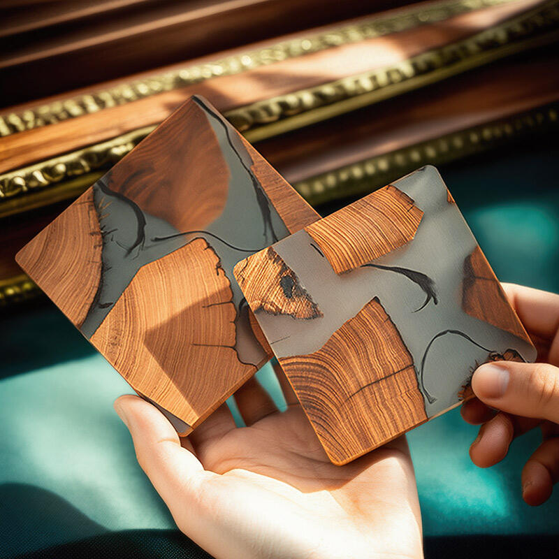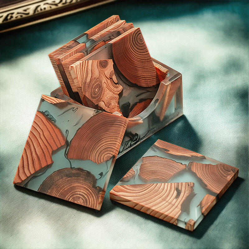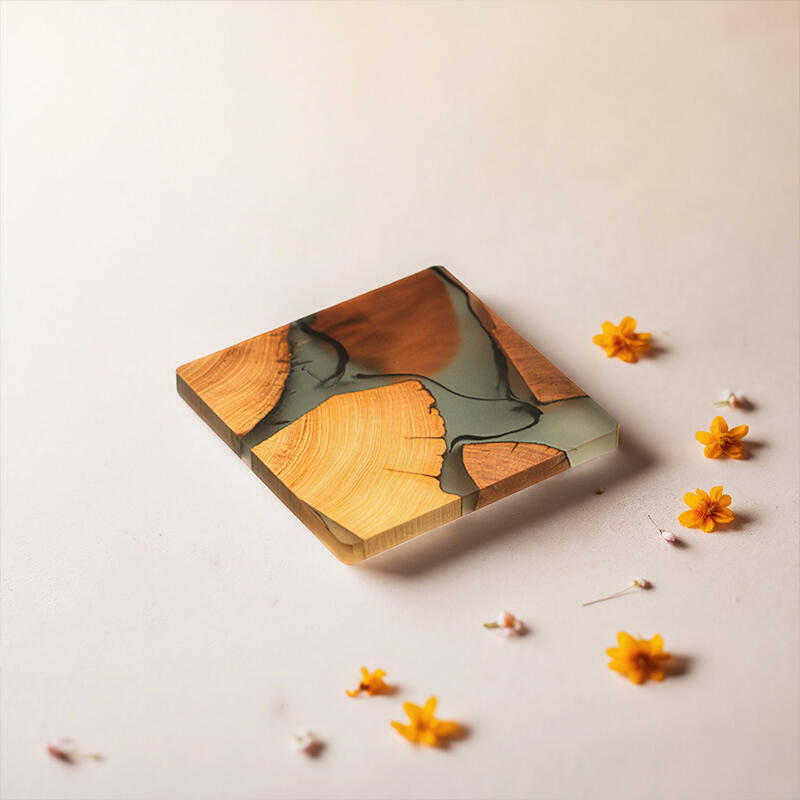 The resin acts as a protective and decorative layer. It encases the Thuja sutchuenensis, enhancing its beauty and durability. The smooth surface of the resin gives the coasters a modern and elegant look.