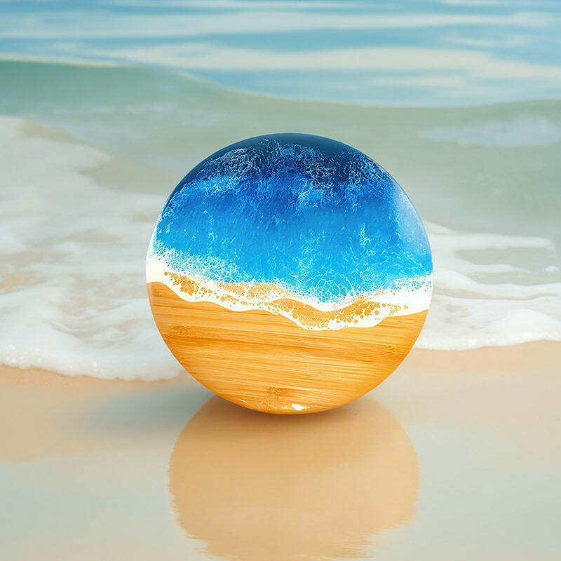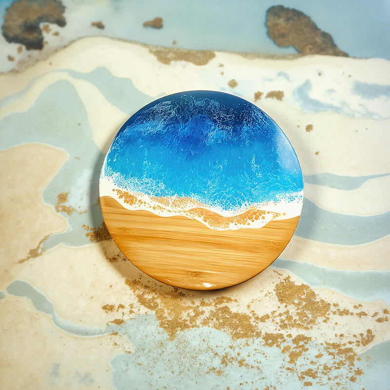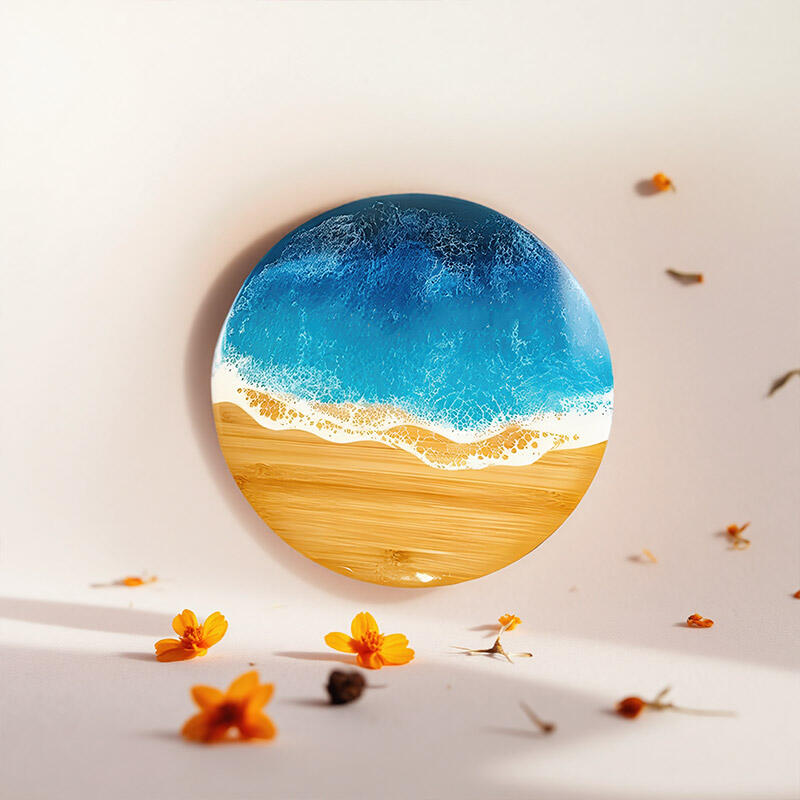 Reslol Exquisite Round Ocean Bamboo & Resin Coasters With Wave & Beach Elements