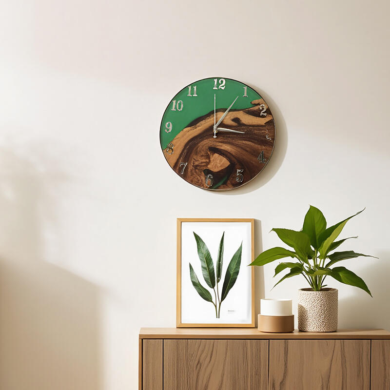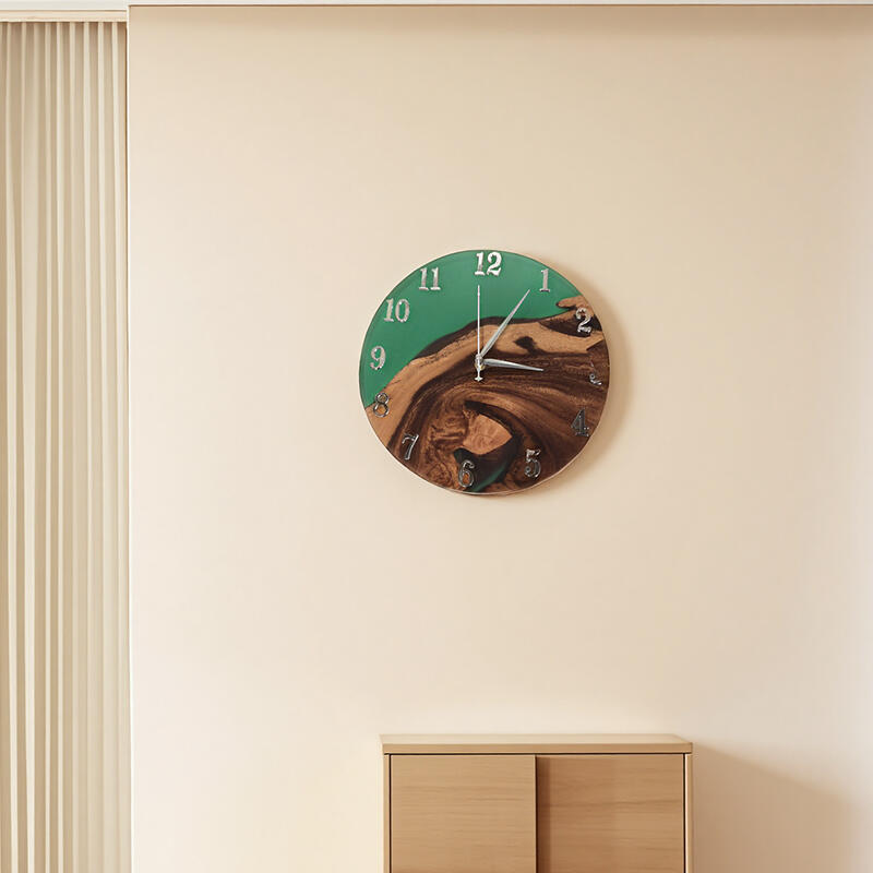 Welcome the Reslol Exquisite Walnut Wood Green Resin Art Wall Clock into your space. This isn't just a time-telling device, it's a masterpiece that seamlessly marries nature and art.