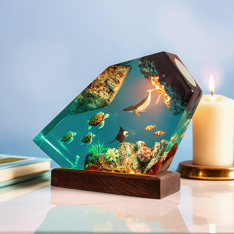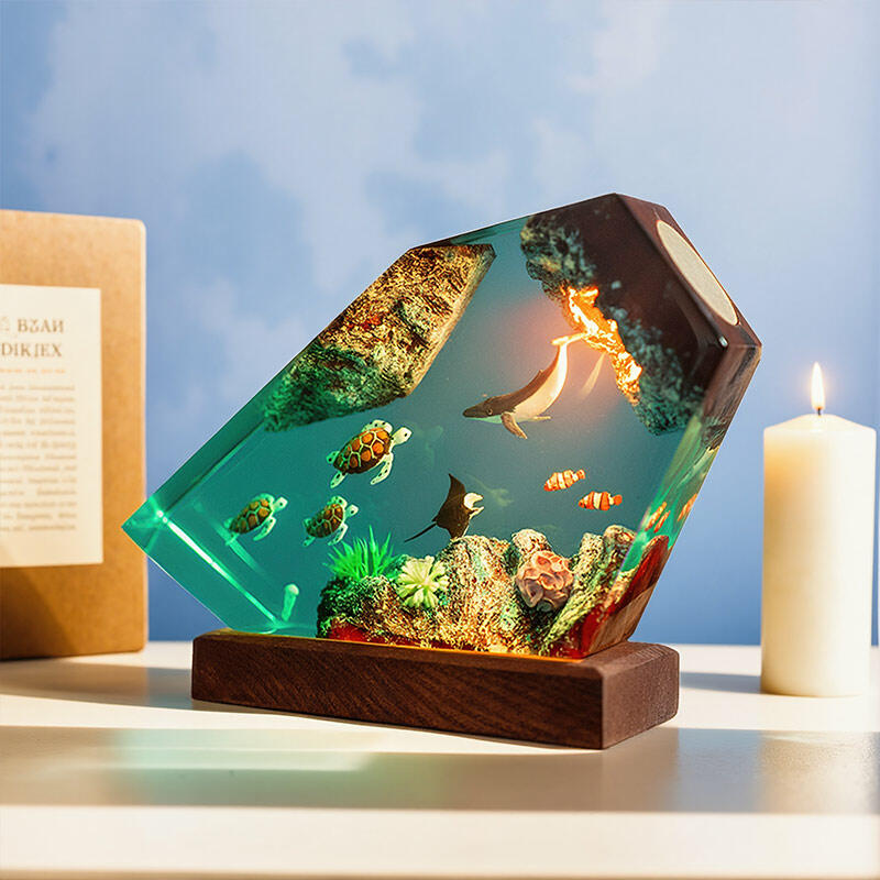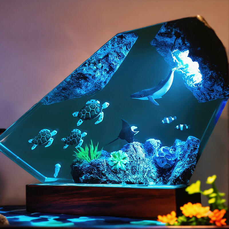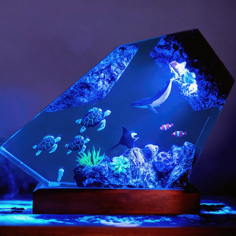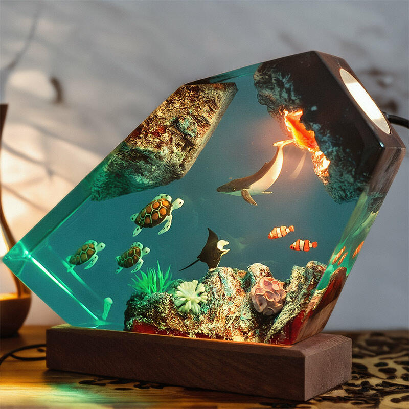 Hey, fans of marine-themed creations! Reslol brings you this fascinating irregular resin lamp featuring whales and turtles.